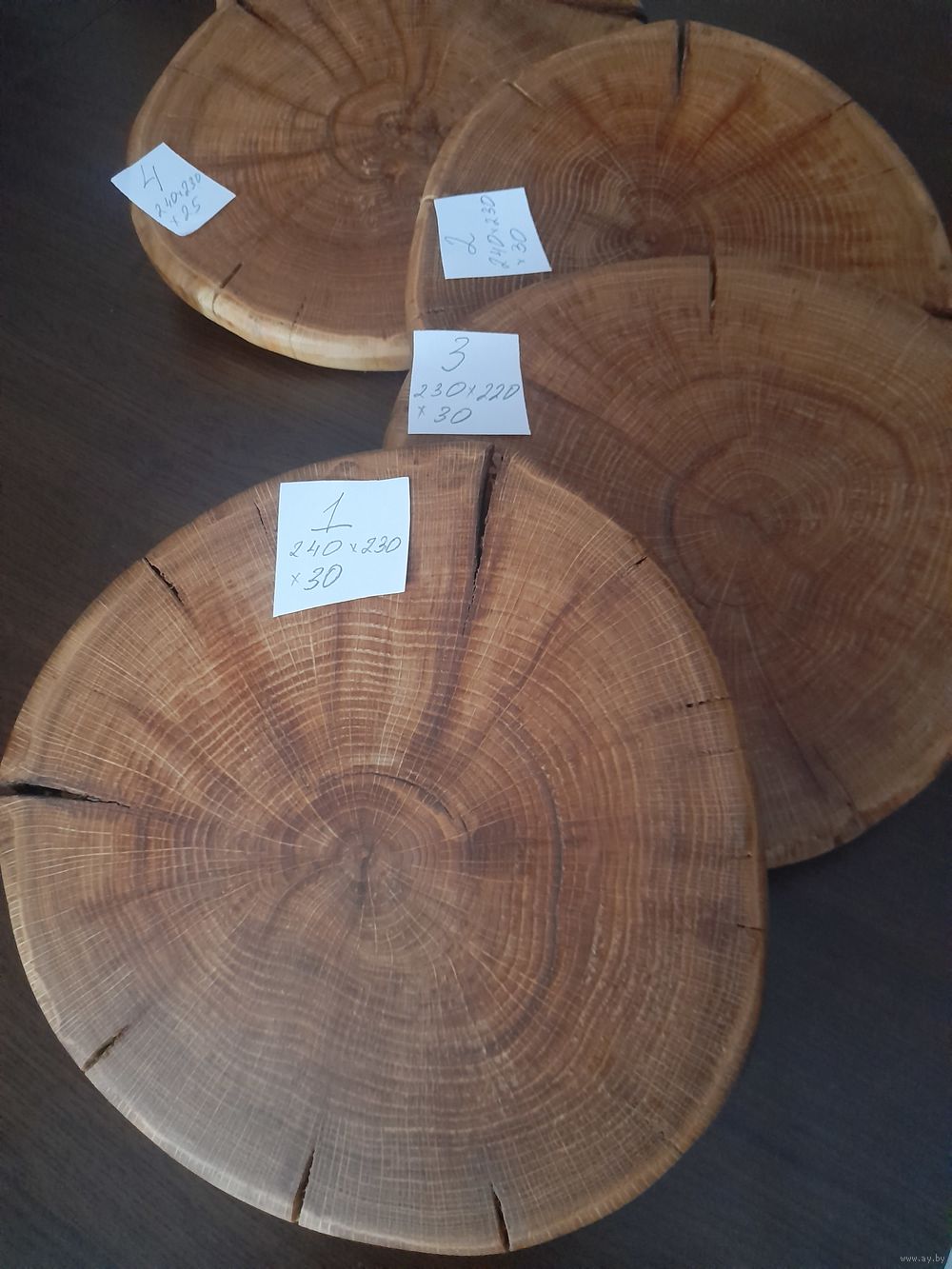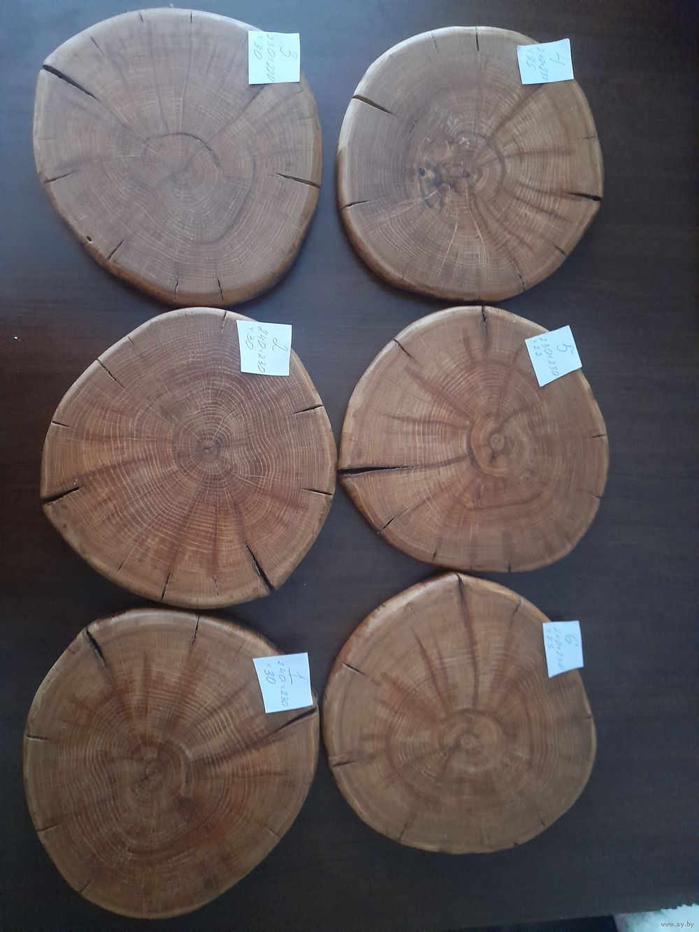 Изделия из торцевого спила дерева. Дуб. Пропитано природным маслом с добавлением пчелиного воска. Размер указан на листочке (мм.) Фото. Цена за 1 шт.