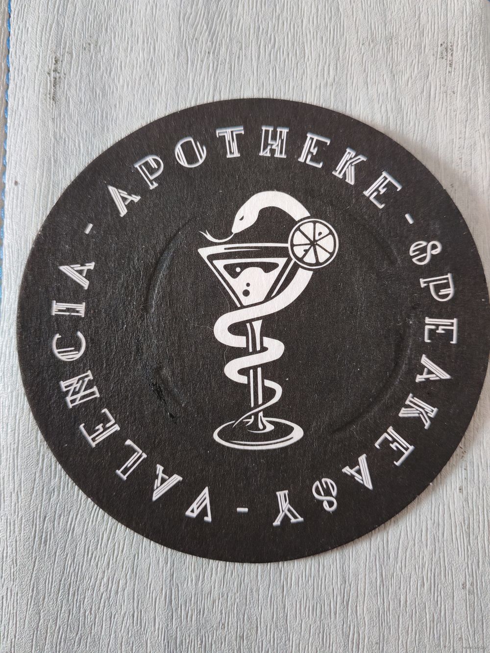 Подставка из бара Apotheke в Валенсии. Во времена сухого закона бар работал под вывеской аптеки.