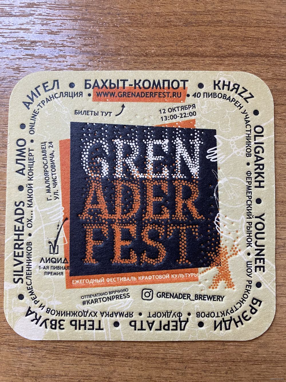 Подставка под пиво "Grenader Brewery" /Россия/ No 1