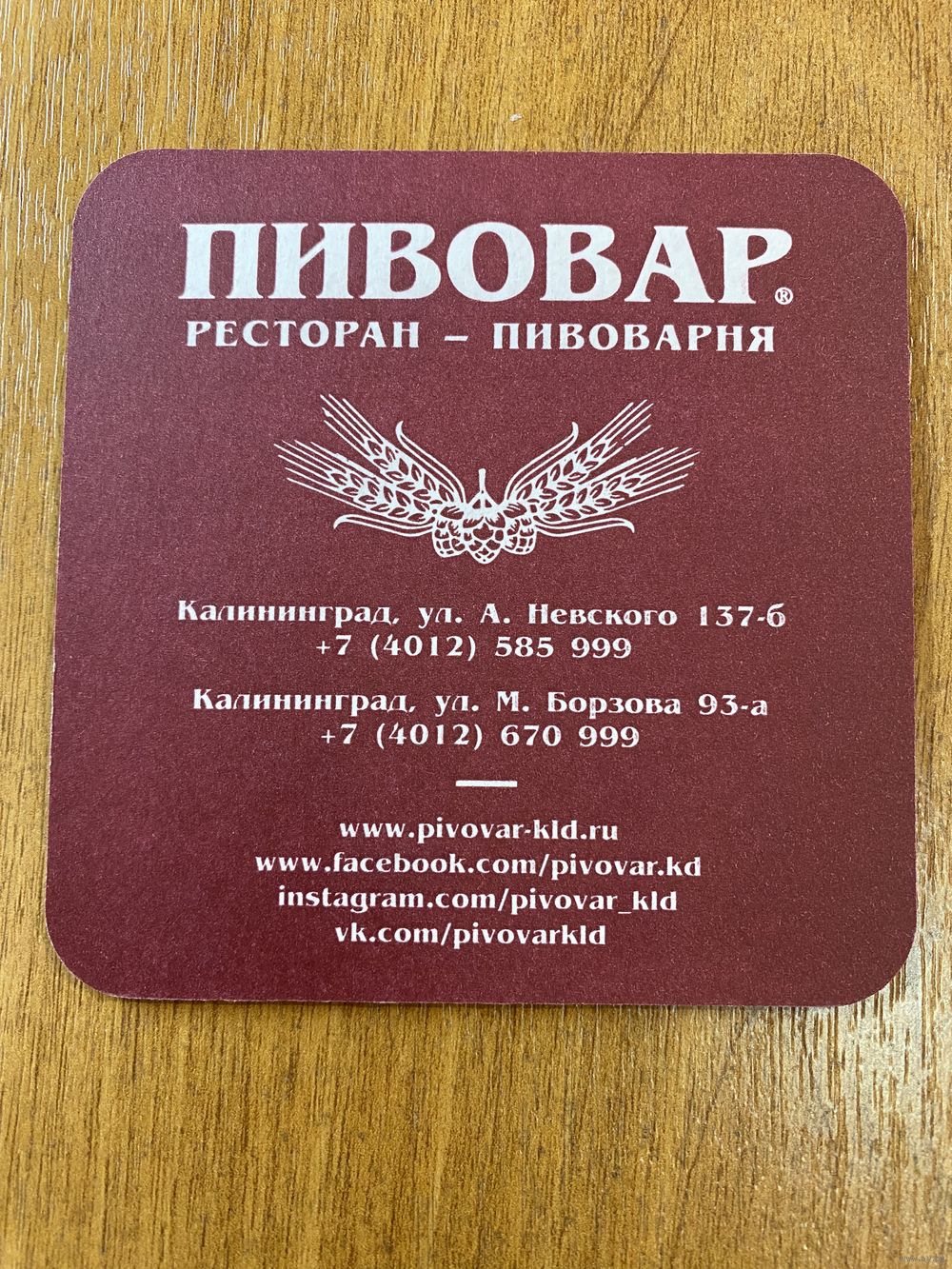 Подставка под пиво ПИВОВАР /Калининград, Россия/ No 1