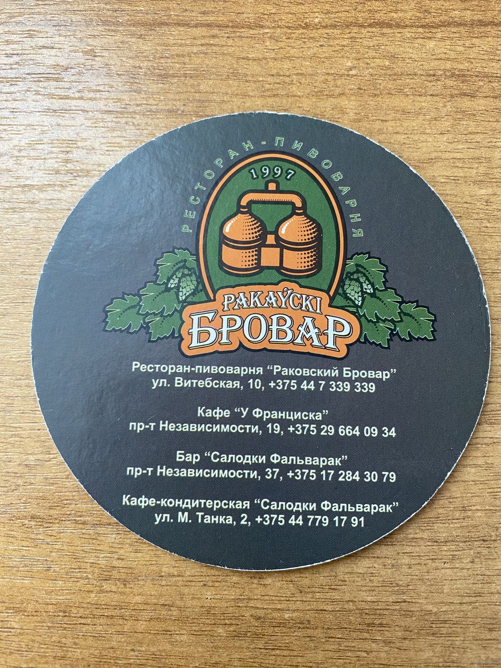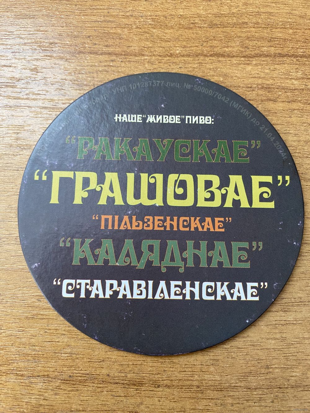 Подставка под пиво ресторана-пивоварни "Ракаўскi Бровар" /Минск/ No 26
