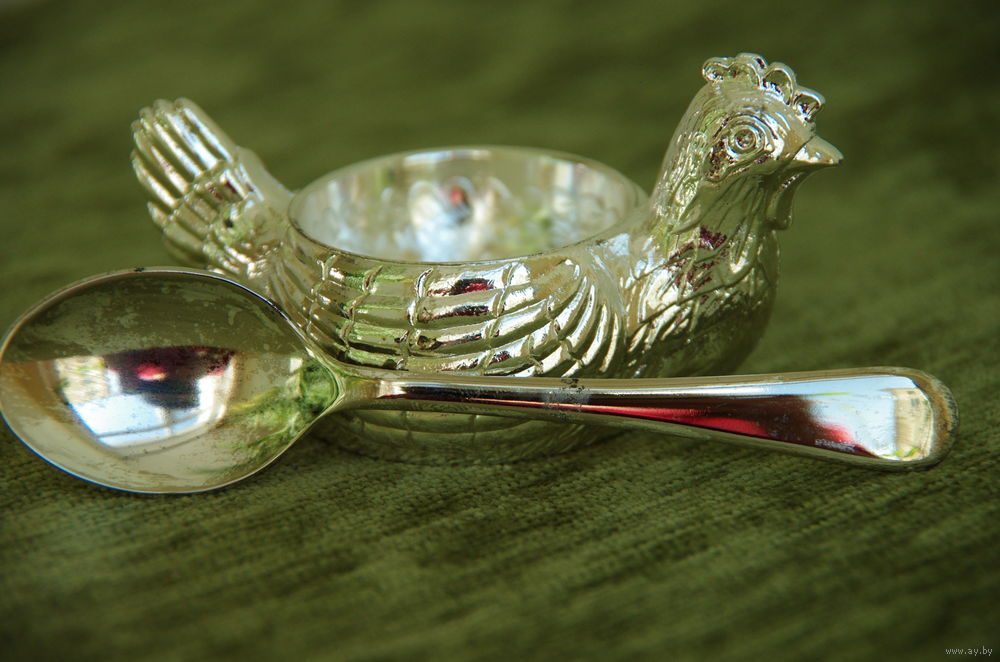 Подставка под яйцо ( Пашотница ) с ложкой с серебрением ( Англия )