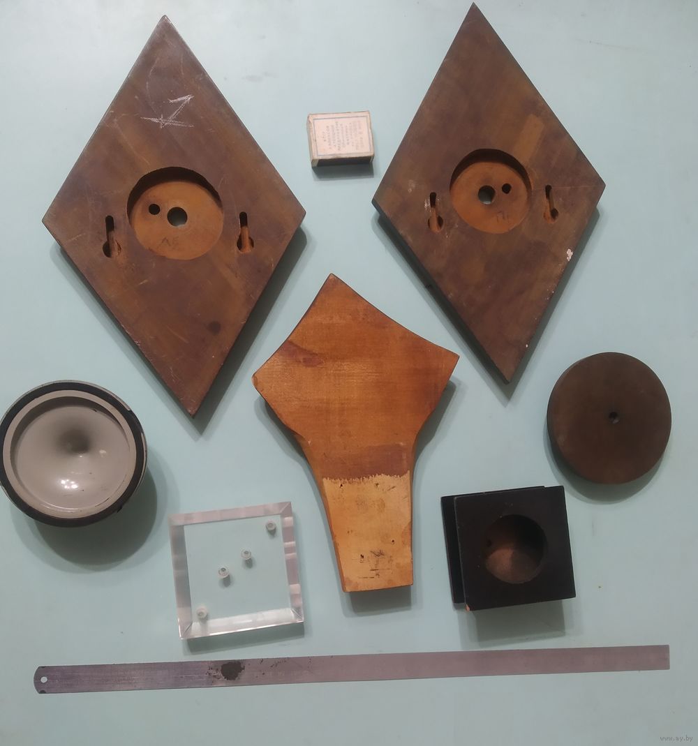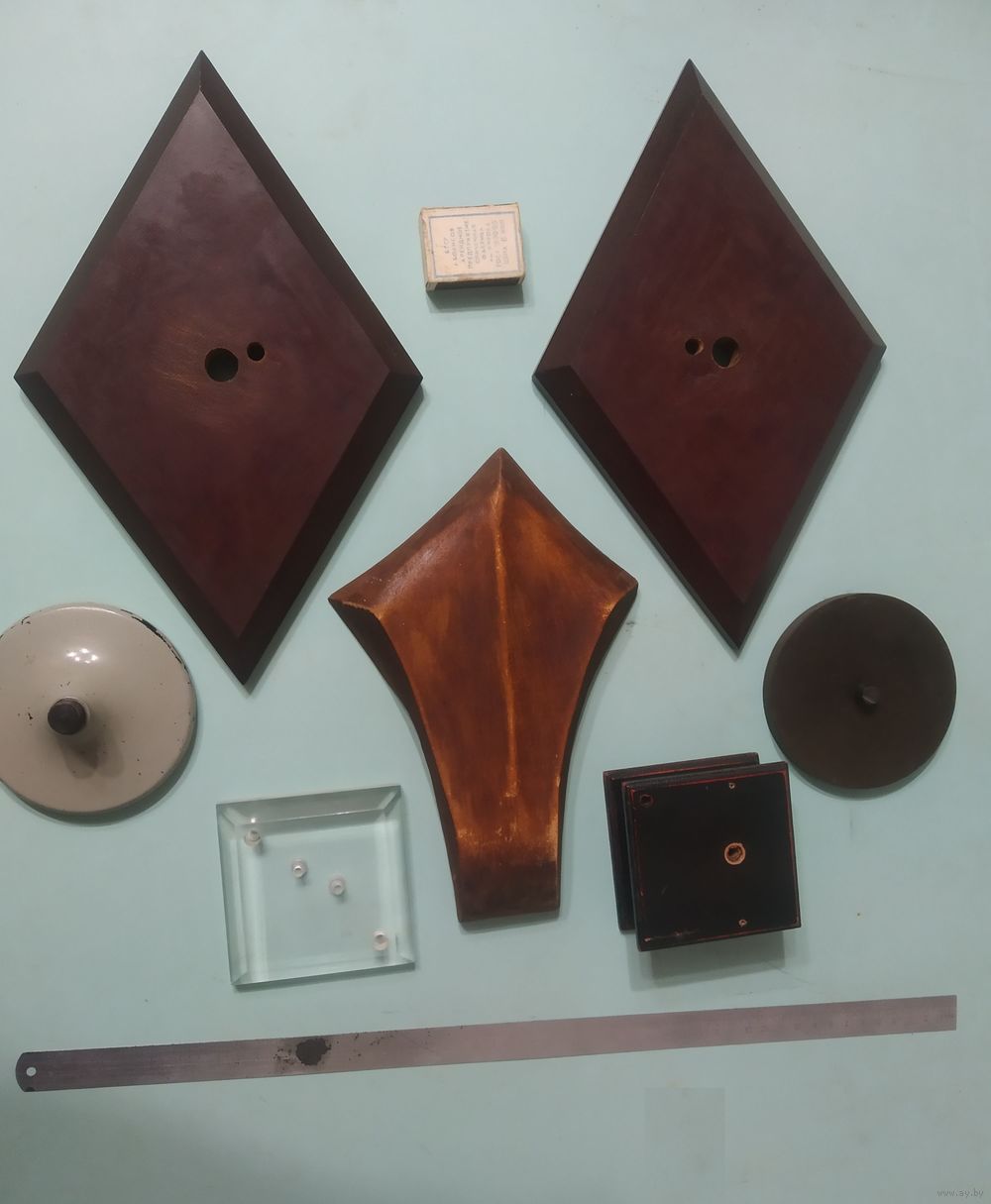 Фото 1-3. 2 стеклотекстолитовых медальона (ромб). По цене 15 руб. за каждый. Длина 31,8 см, ширина 20 см, толщина 2,5 см. На тыльной части каждого фрезеровано по два отверстия под потайное крепление на стену (чтоб шляпки крепежа небыли видны). Стеклотекстолит — это влагостойкий электроизоляционный композит из стеклоткани, пропитанной полимерной смолой. Высокая прочность, износостойкость при высоких нагрузках и температурах. Можно также применить для электромонтажных целей.
