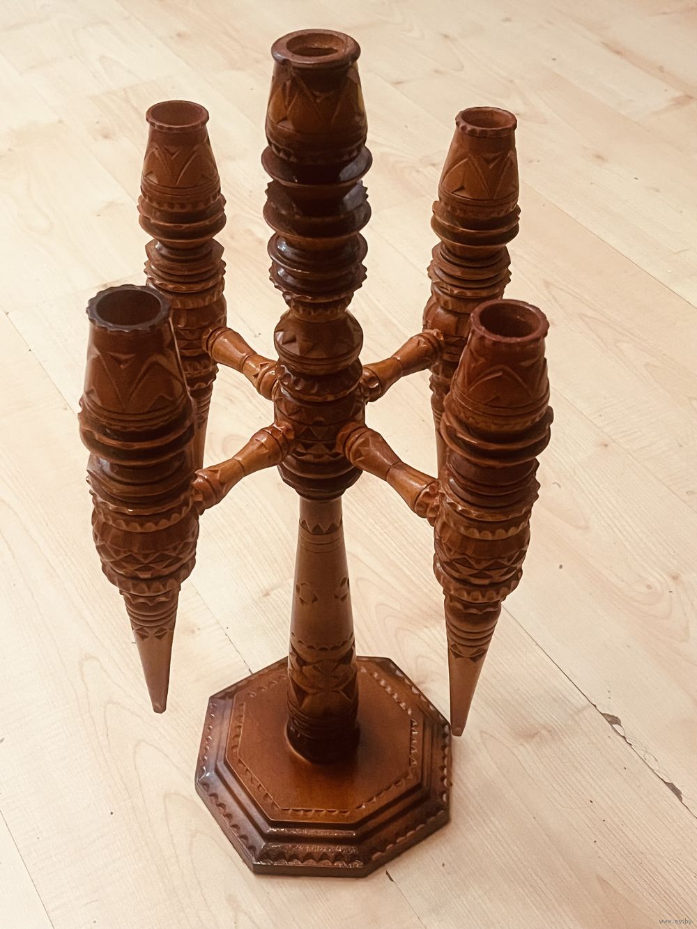 Резной деревянный подсвечник на 5 свечей - ручная работа