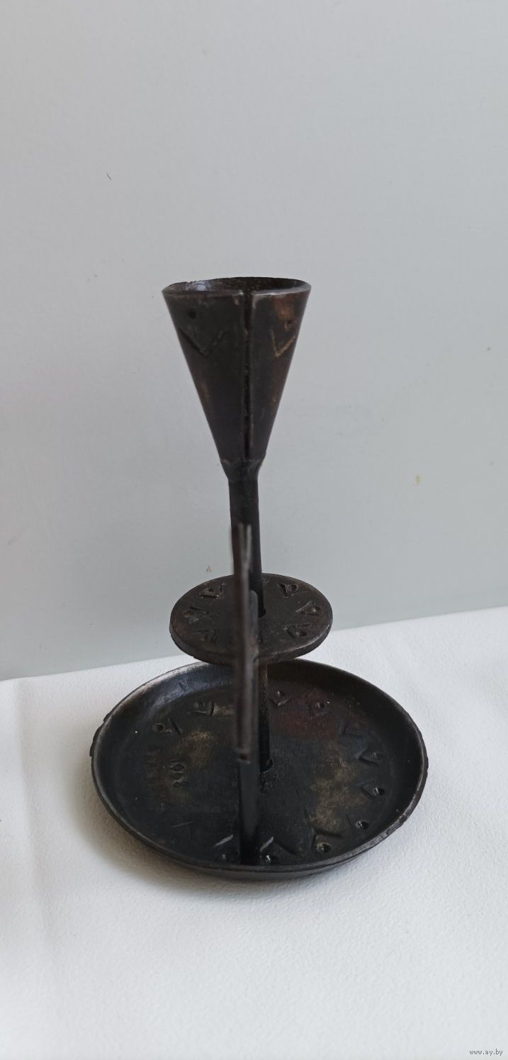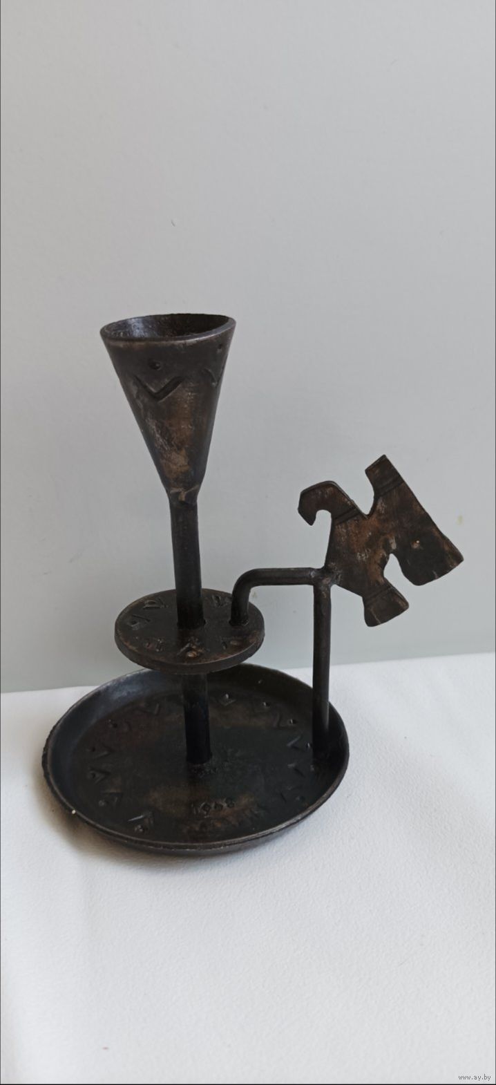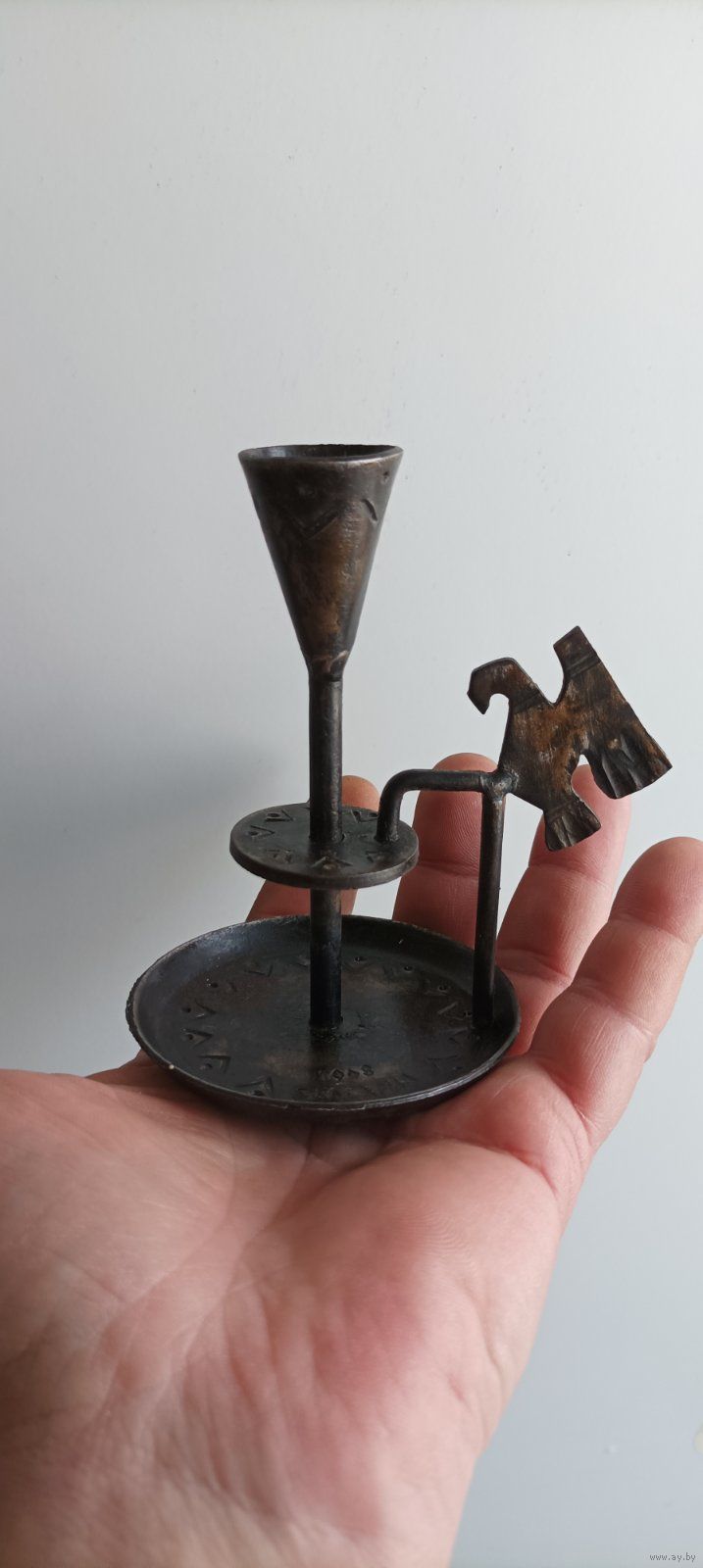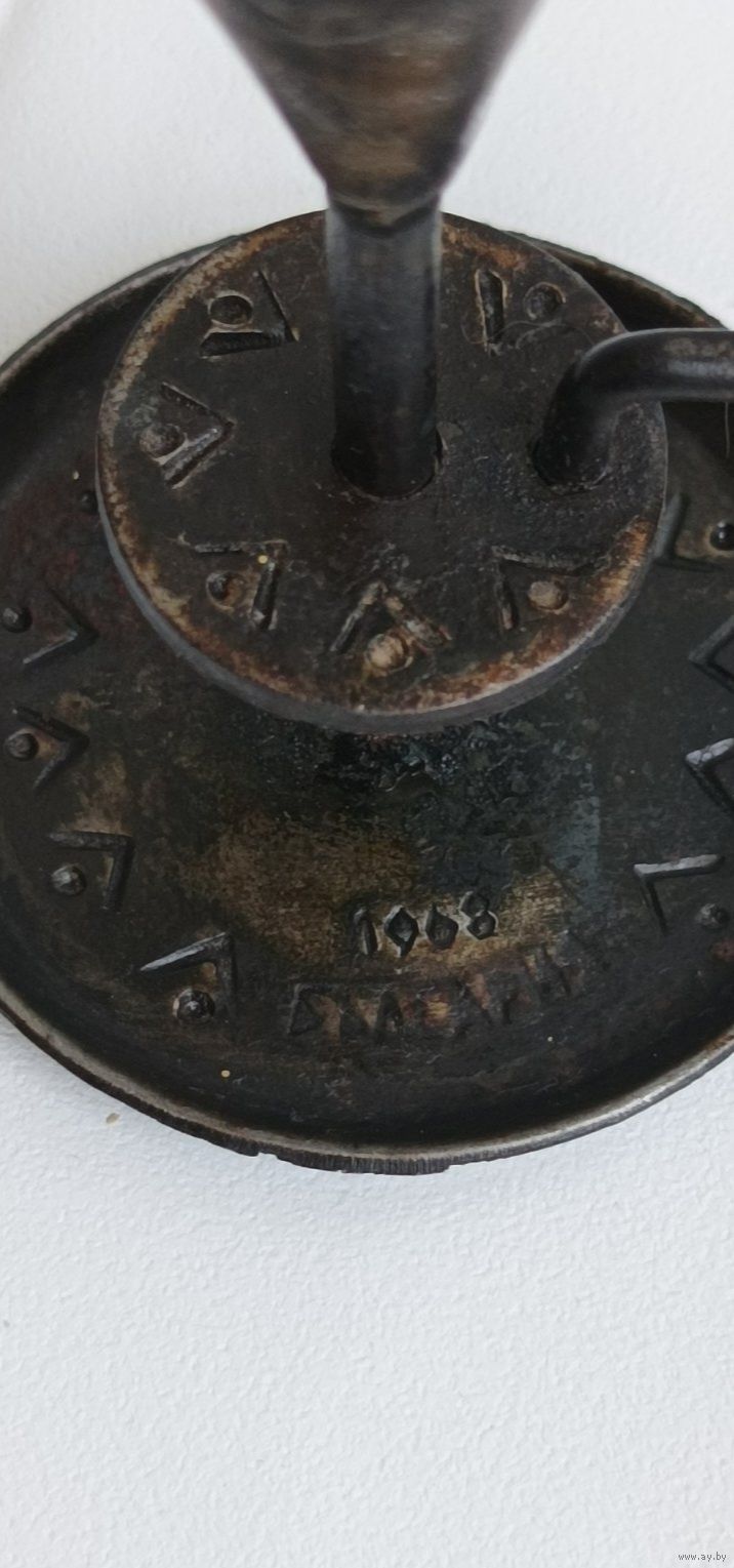 Железный кованный подсвечник. Покрашен под бронзу. Выбита надпись "1968 Болгария". Высота-11см.