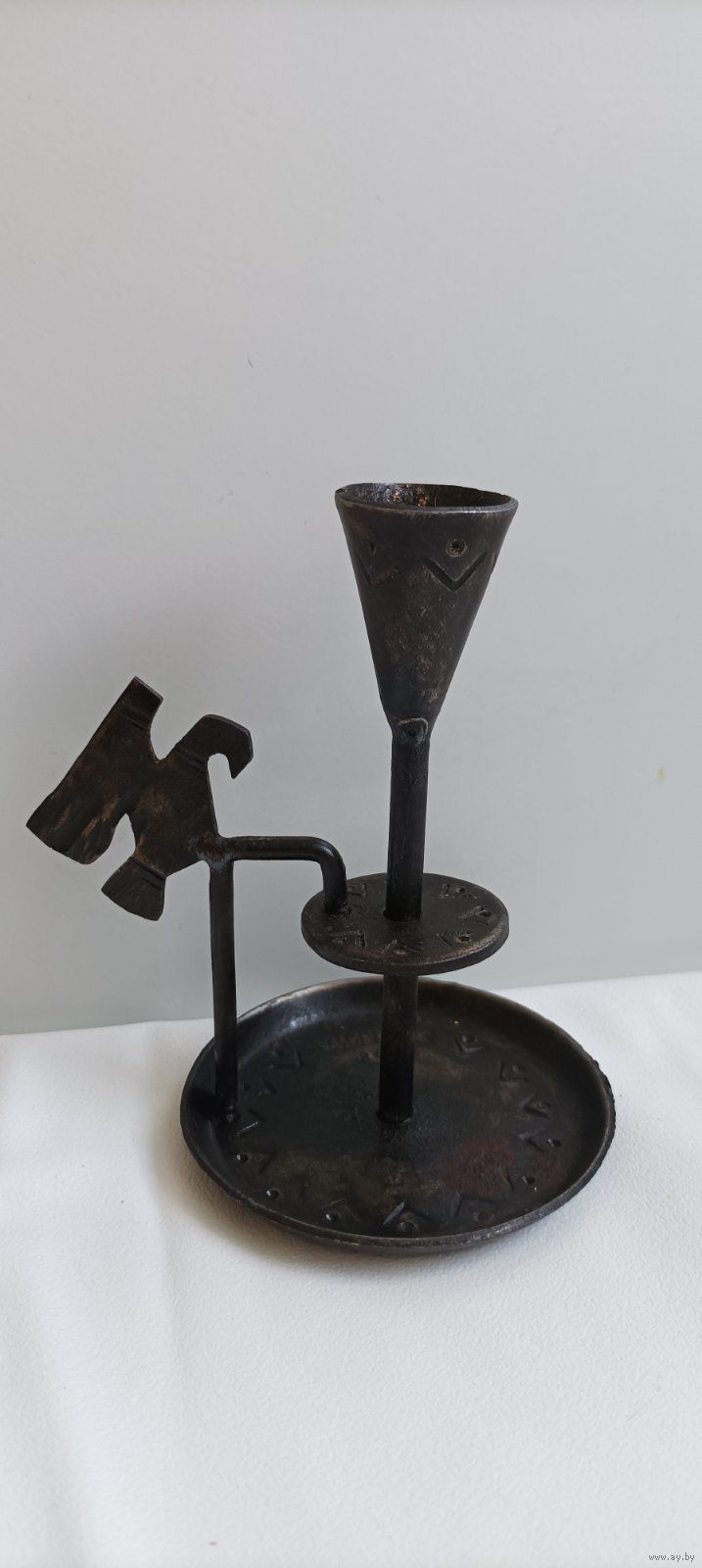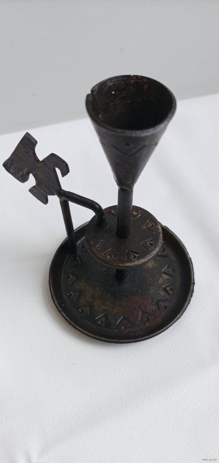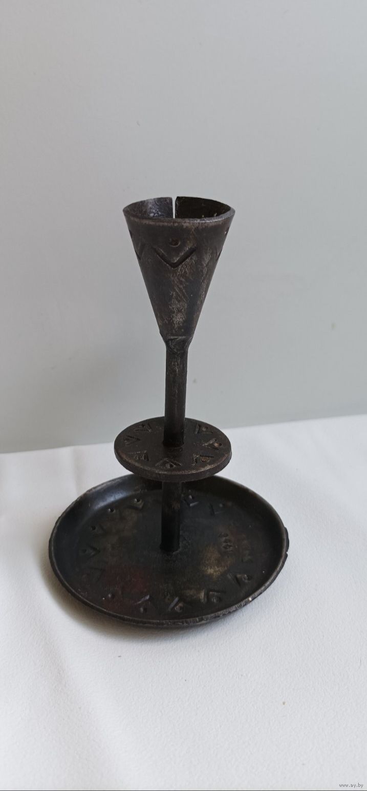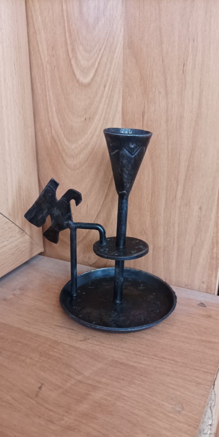 Железный кованный подсвечник. Покрашен под бронзу. Выбита надпись "1968 Болгария". Высота-11см.
