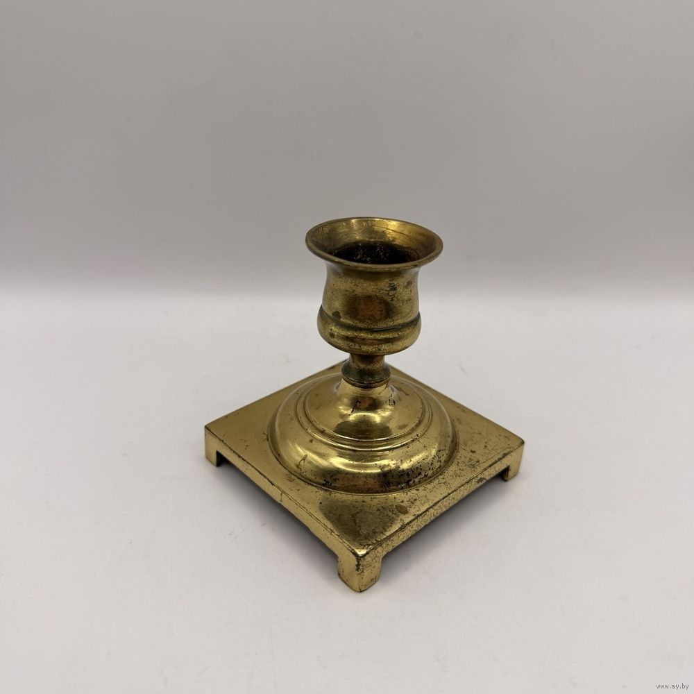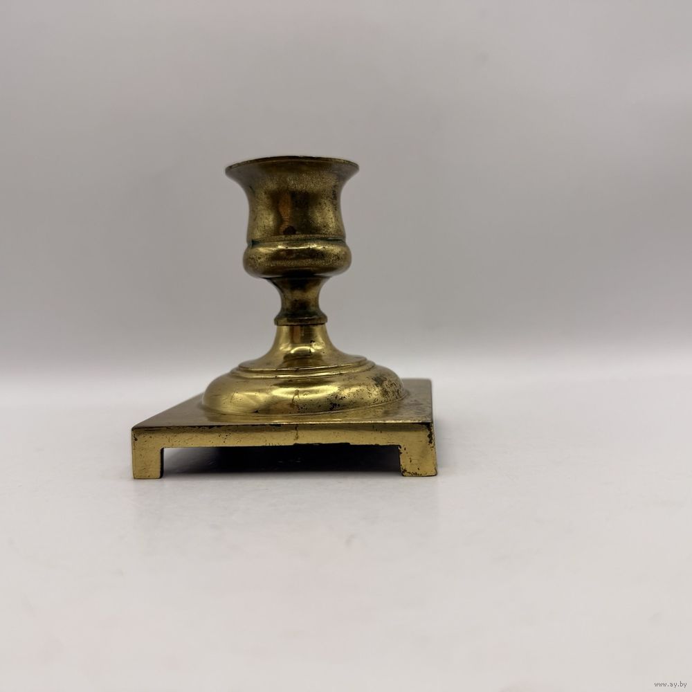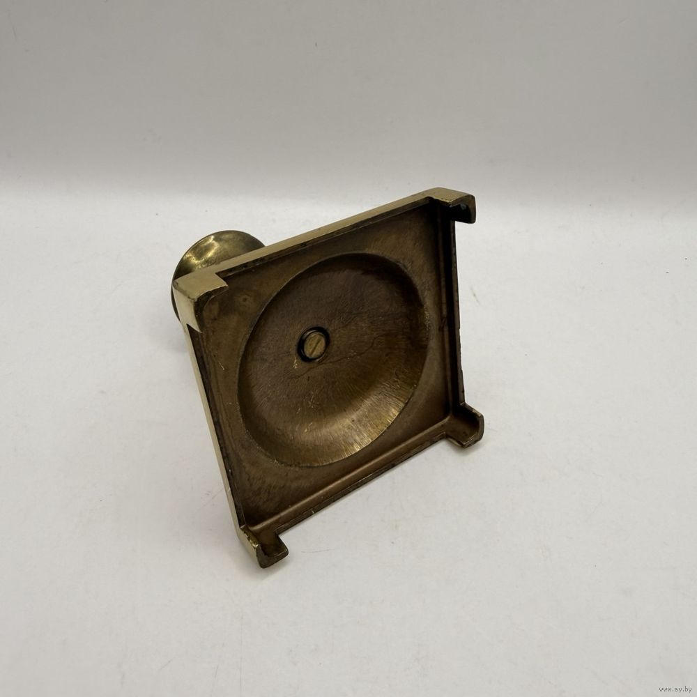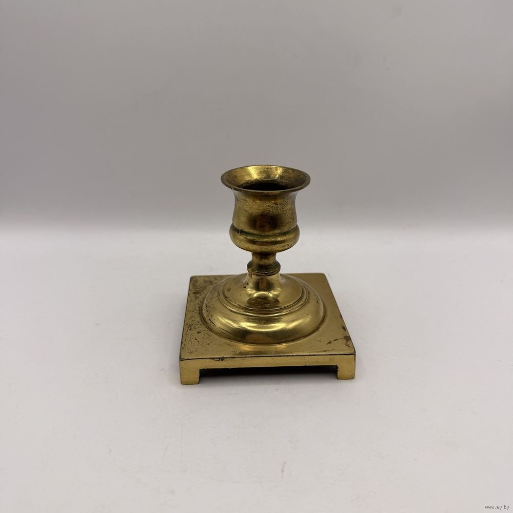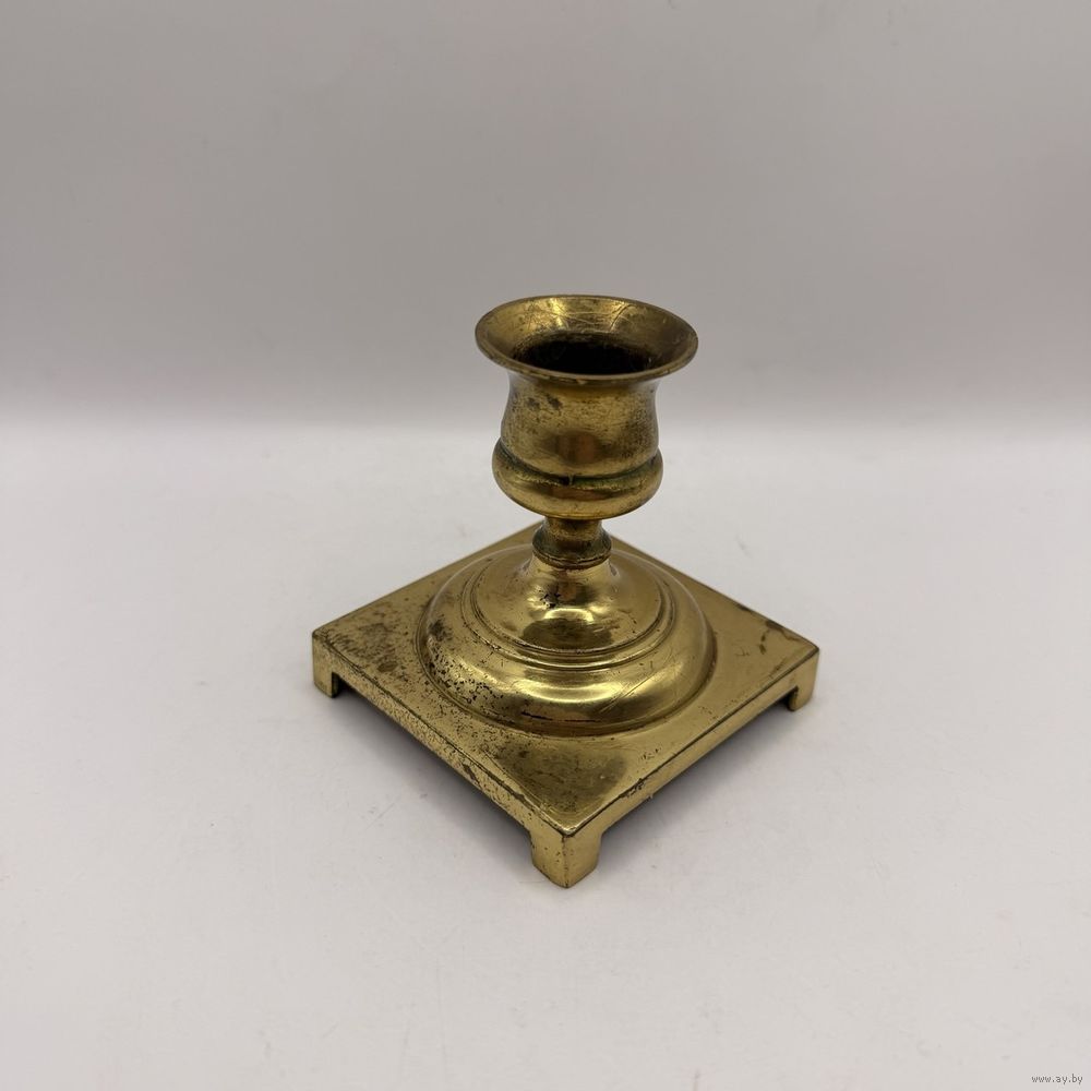 Винтажный латунный подсвечник в стиле Ар-деко, выполнен в виде вазона на квадратном основании с ножками. Франция. 1950-е г.г. Размер основания 7 х 7 см, высота 7 см. Под свечу диаметром 2,5 см. Разборный. Естественная патина, следы бытования.