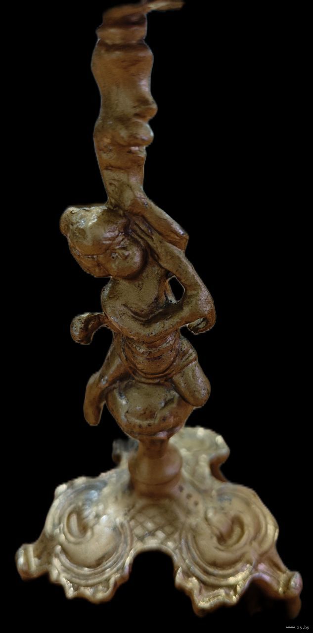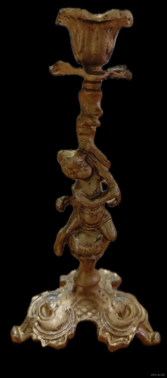 Подсвечник на фигурном основании в виде путти, латунь, Европа, 1960-1980 гг. 18 см