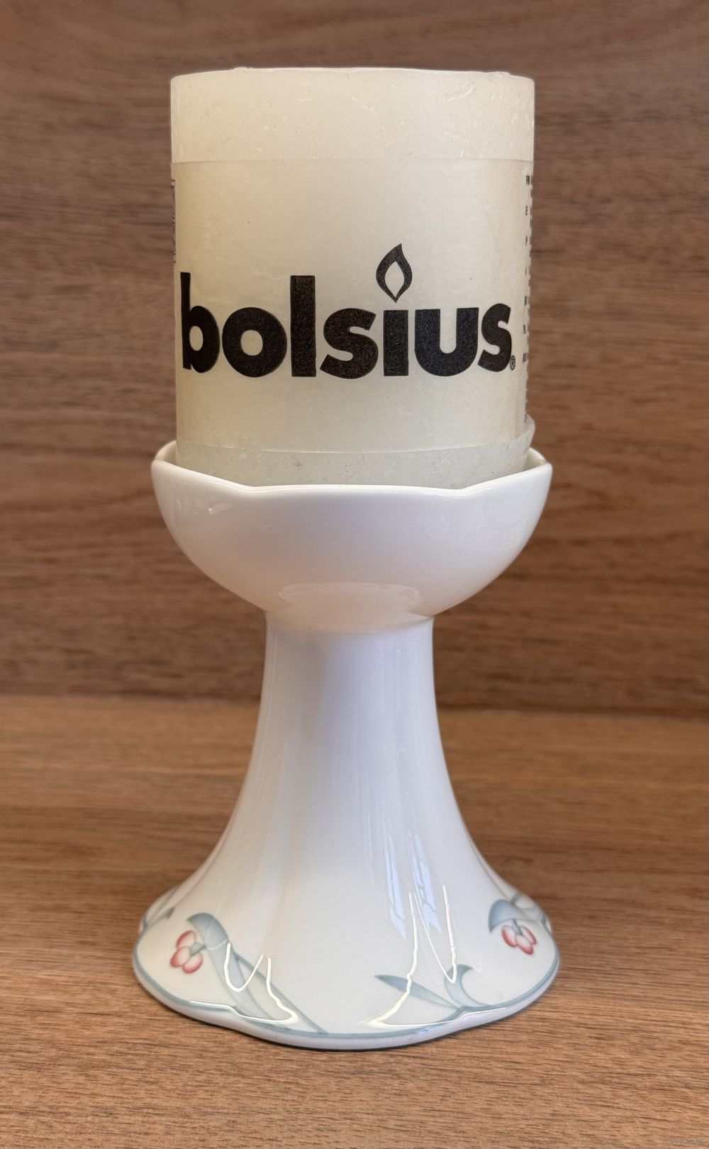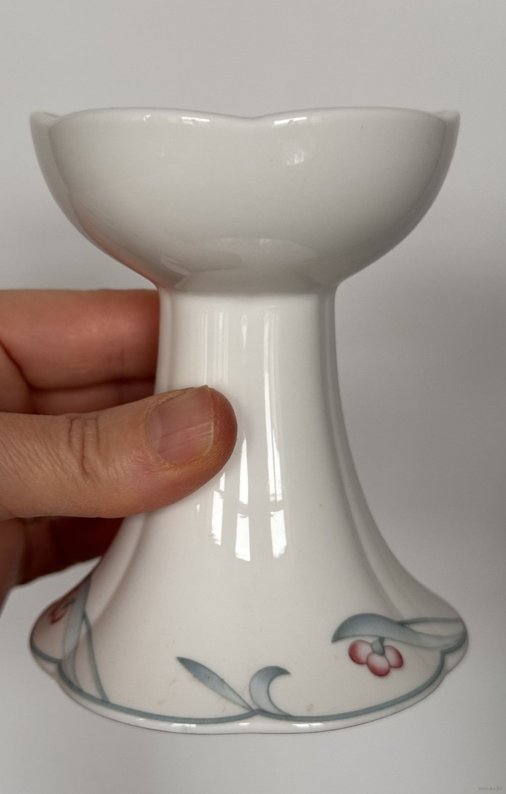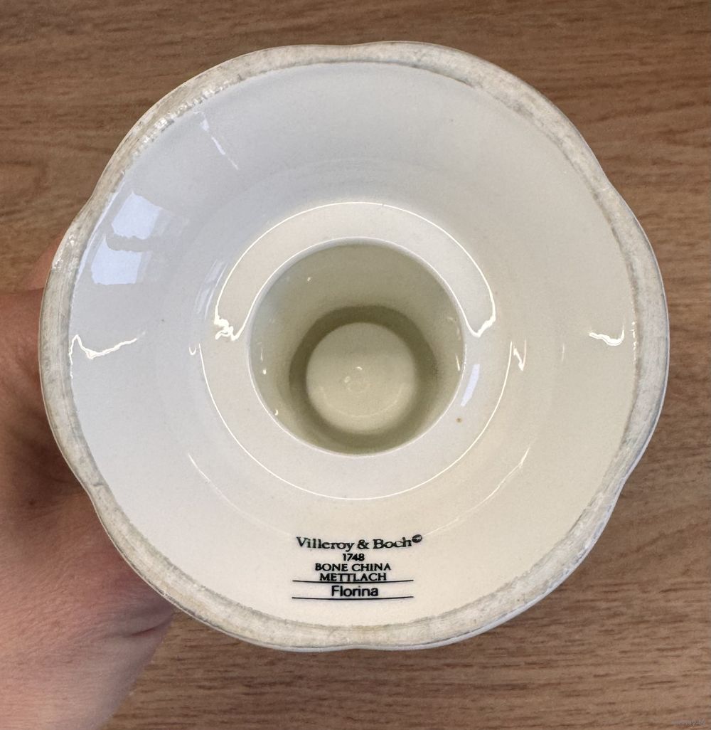 Подсвечник из фарфора Villeroy&Boch из серии Florina. Высота 10см., диаметр для малой свечи 2см., диаметр для большой свечи 7см. Состояние хорошее.