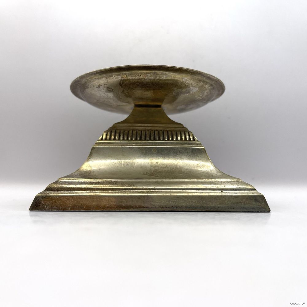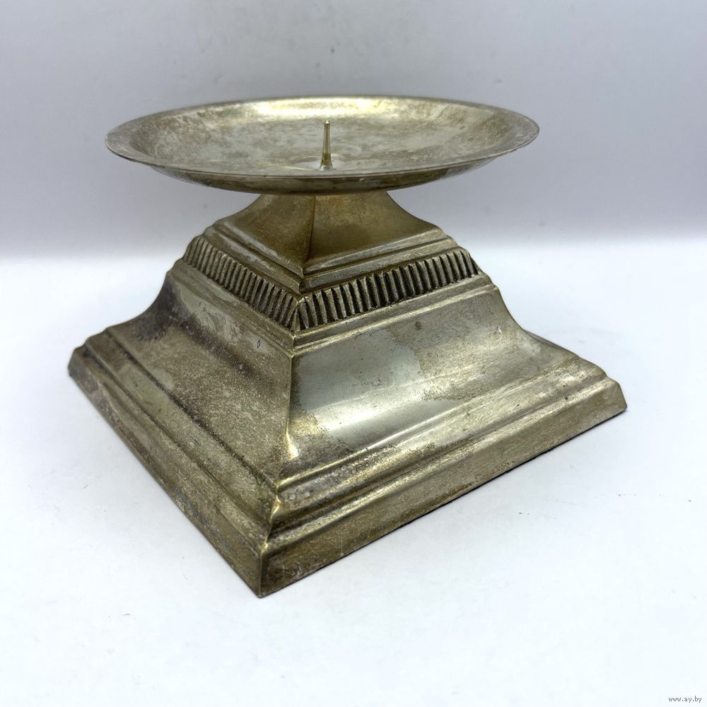 Антикварный посеребренный подсвечник под большую свечу, в стиле Ар-деко. Франция. 1920-е г.г. Размер основания 132,5 х 12,5 см. Высота 8 см. Диаметр розетки 11 см. max диаметр свечи 9 см. Естественная патина.