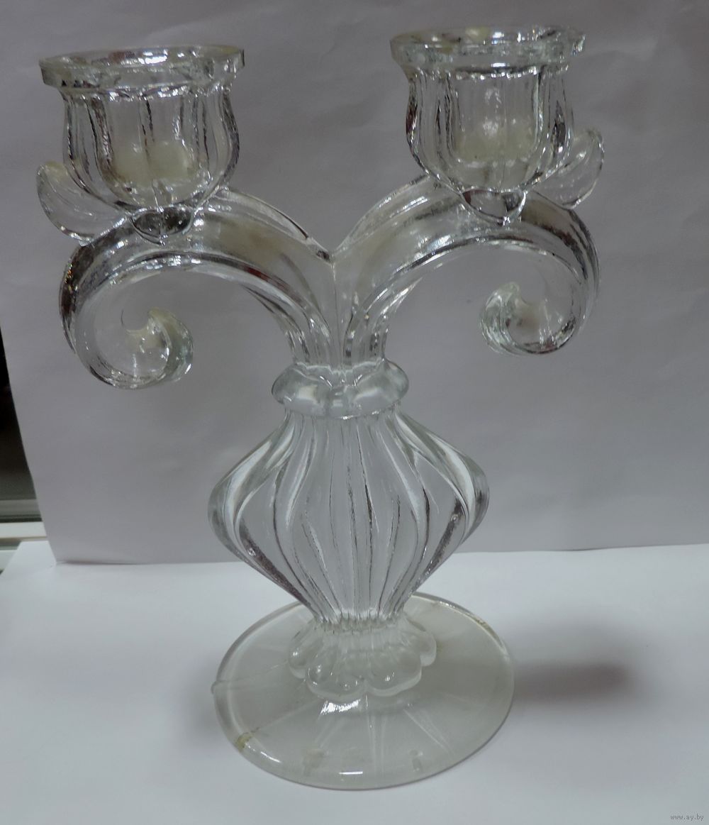 Подсвечник стеклянный 80-е годы. Высота 19.7 см.