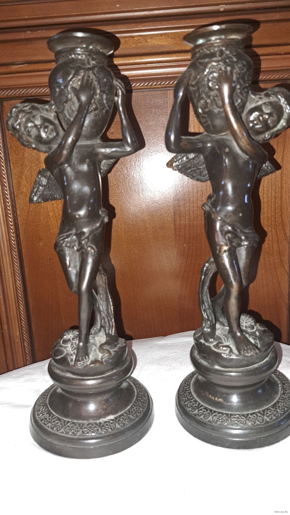 Подсвечники бронзовые высота 26 см. Шоколадная патина. Франция 19 век.