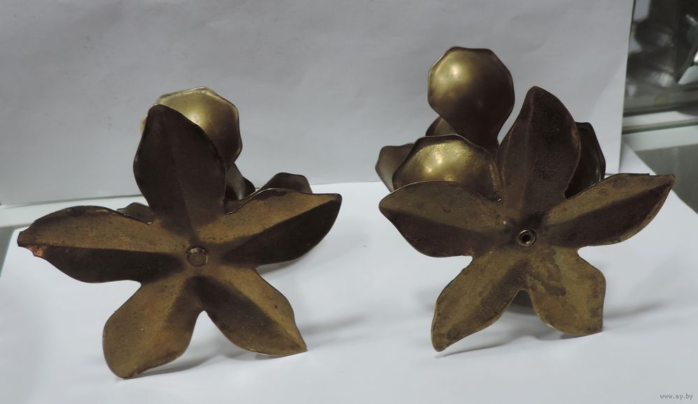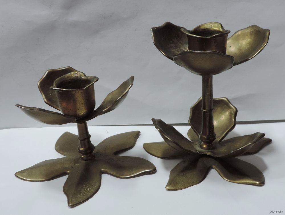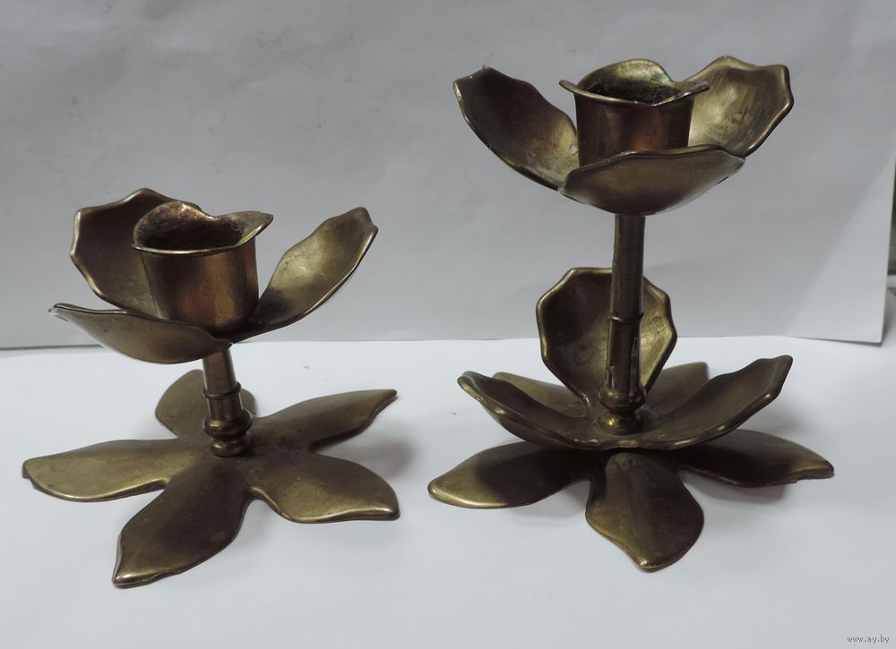 Подсвечники "Цветок" 70-е годы Европа. Высота 7 и 9.5 см. Латунь - 2 шт.