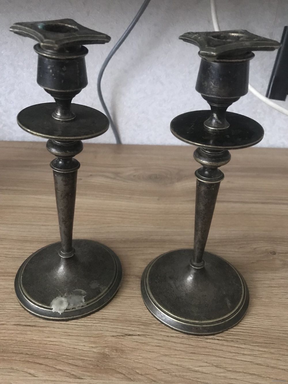 Высота 21 см. Следы бытования, серебрение. Цена за пару