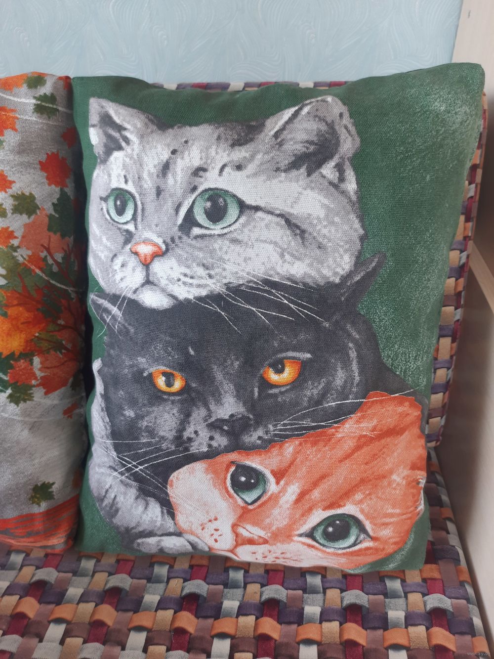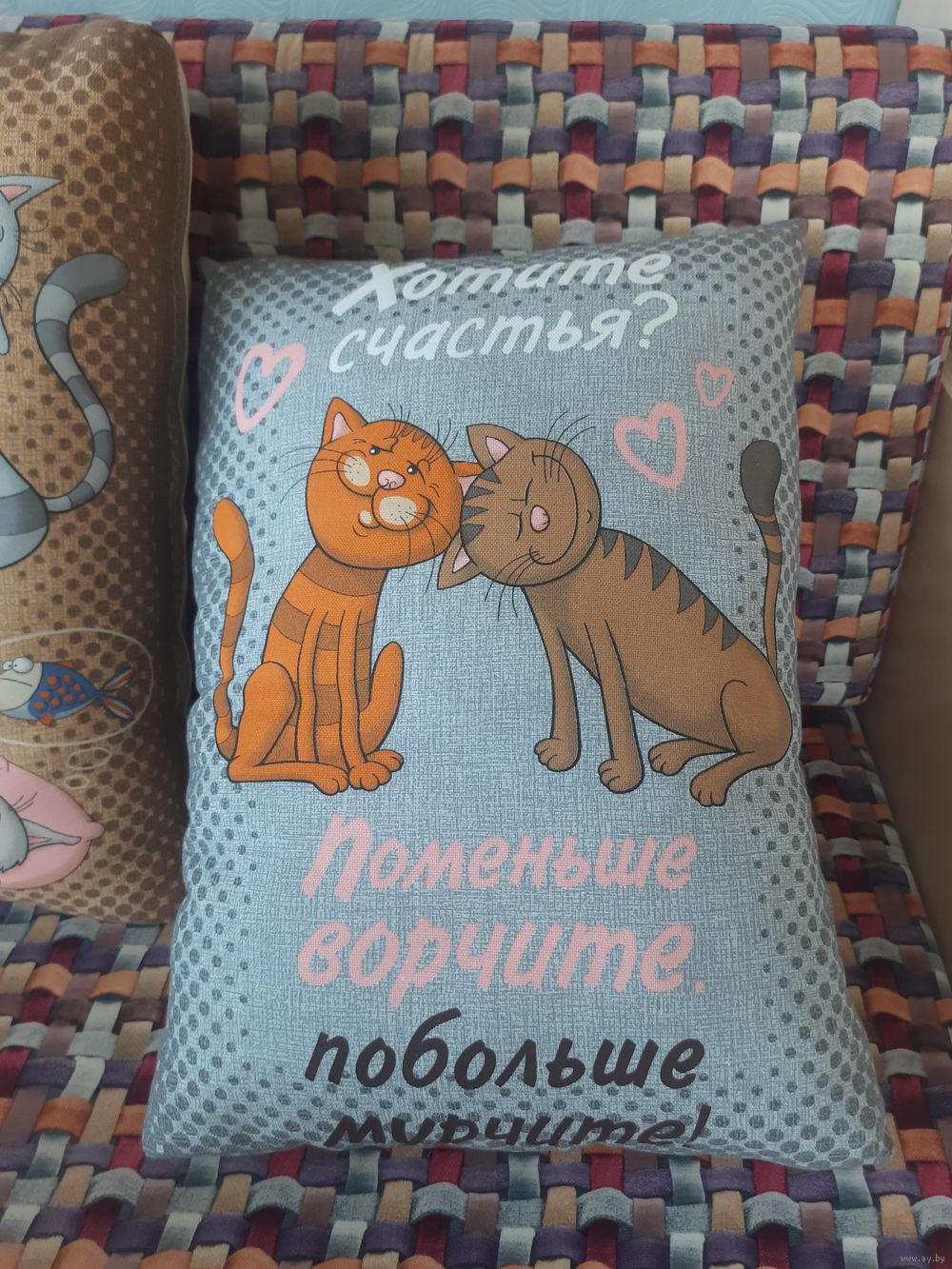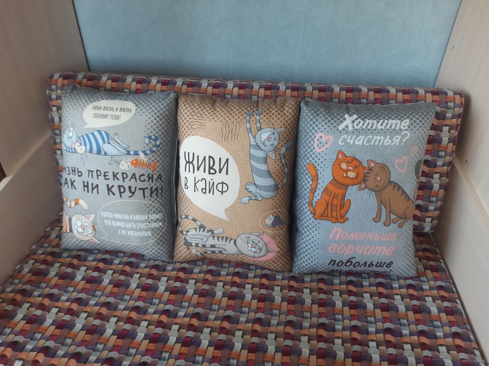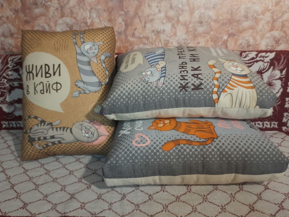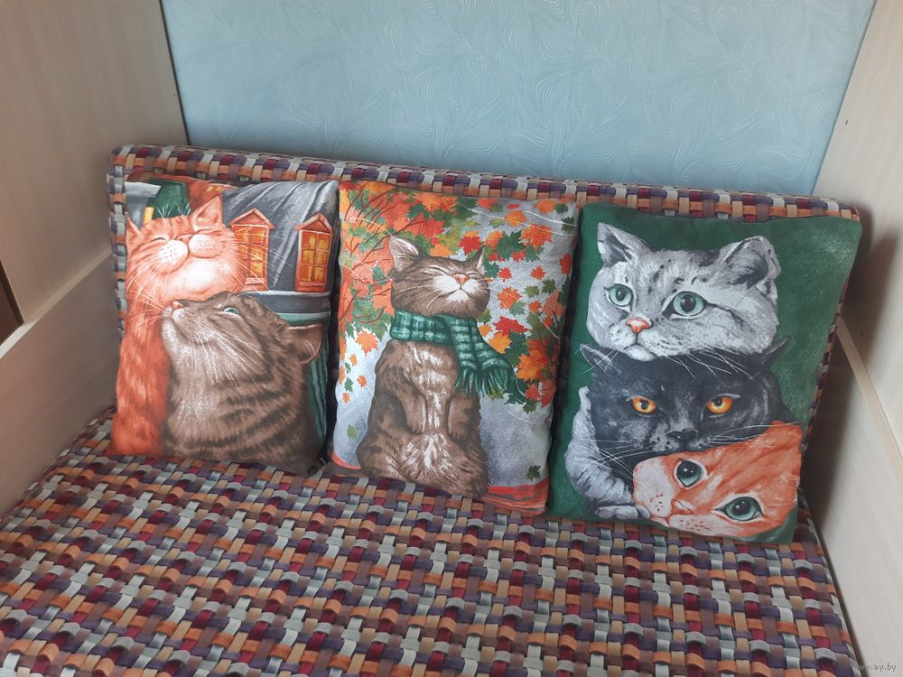 Декоративные подушки с весёлыми котиками.