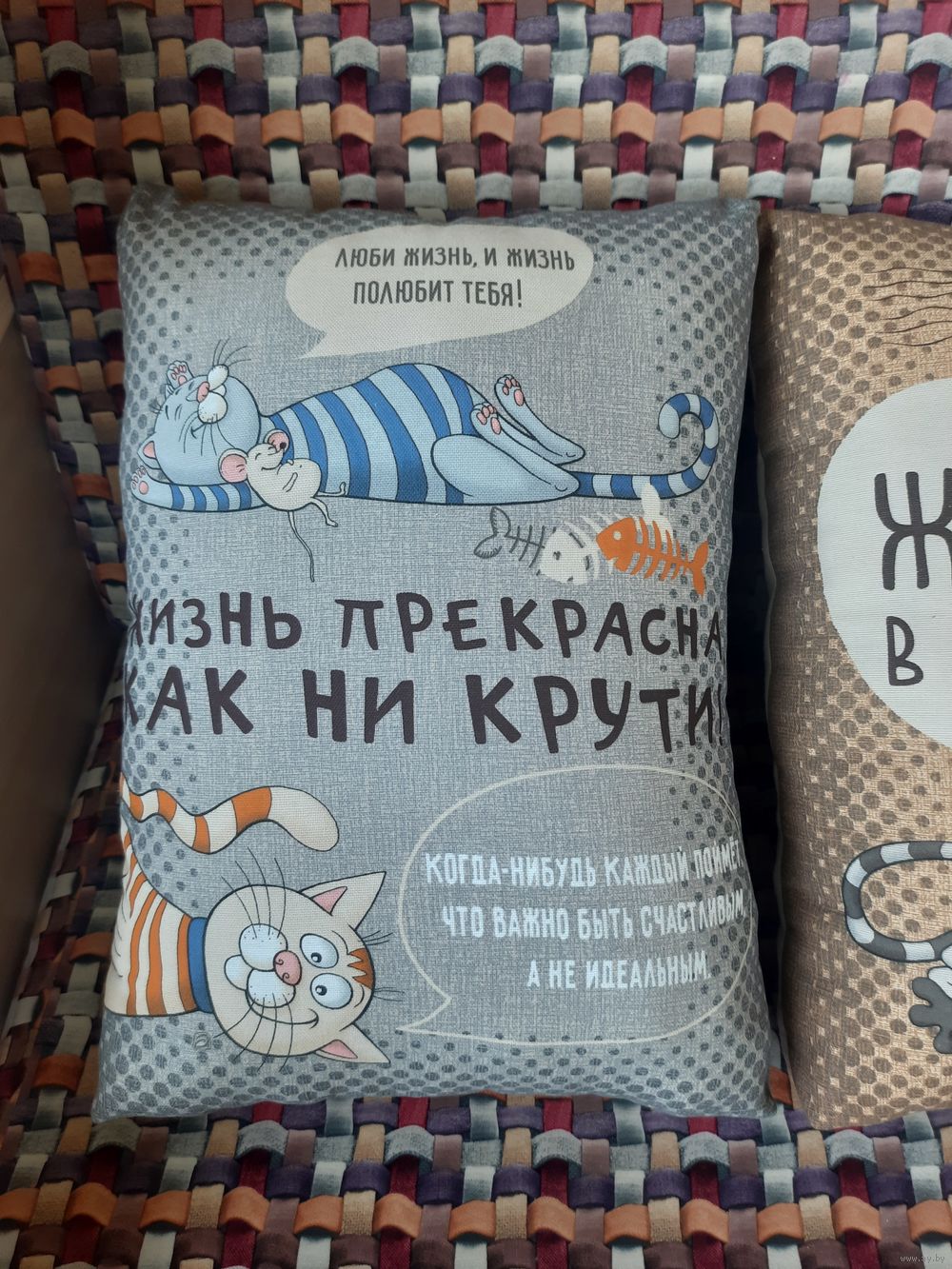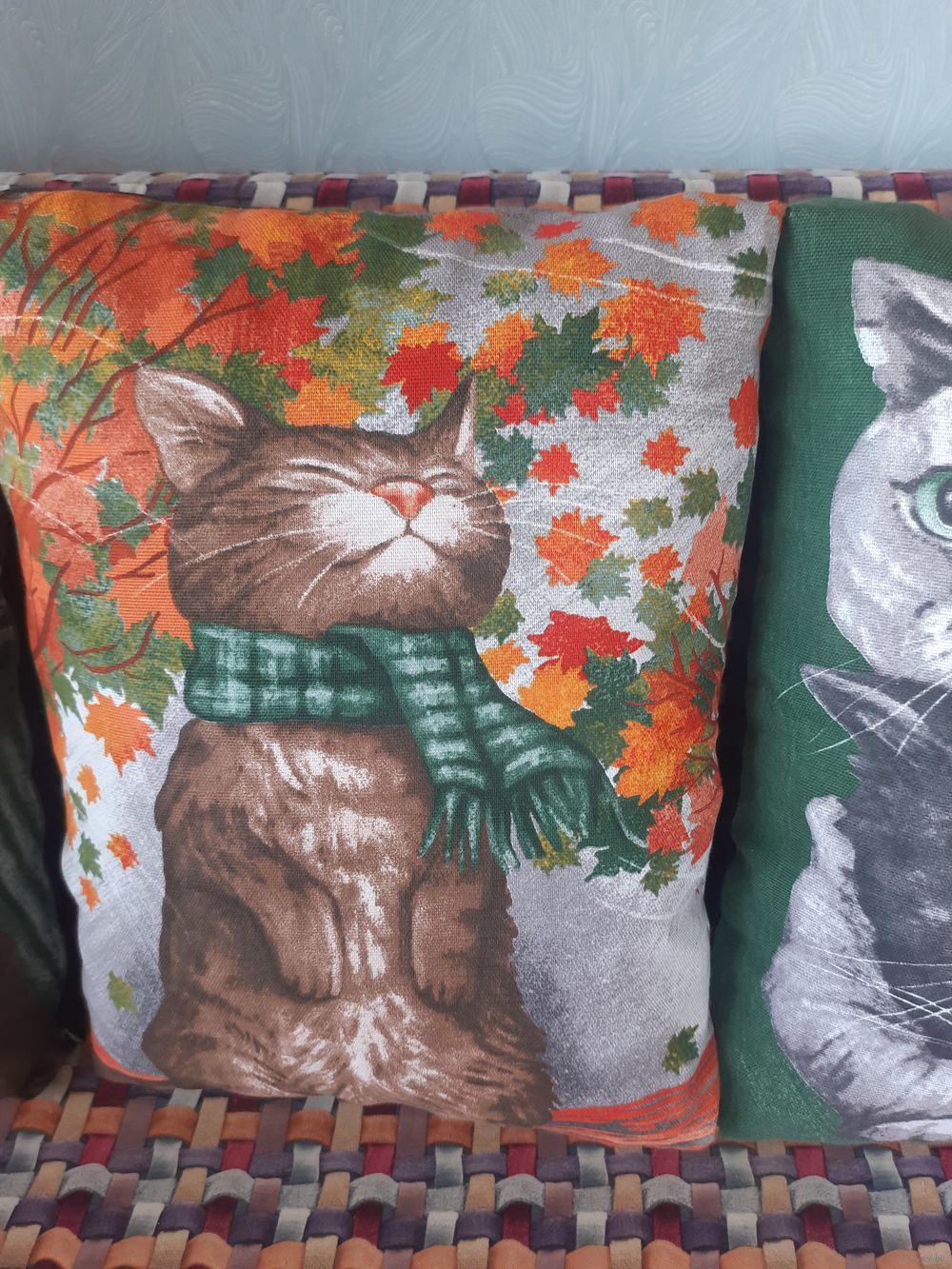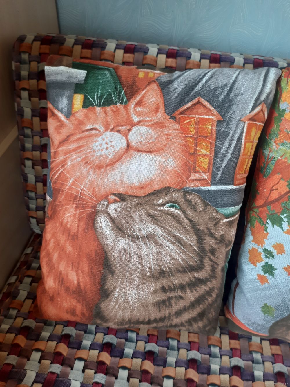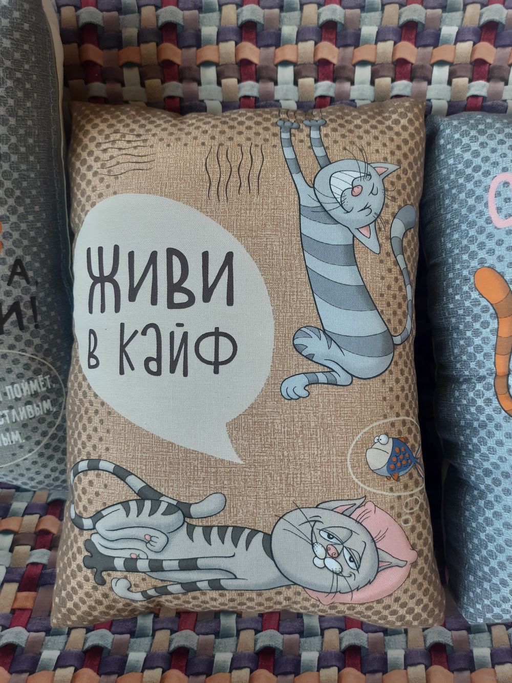 Декоративные подушки с весёлыми котиками.