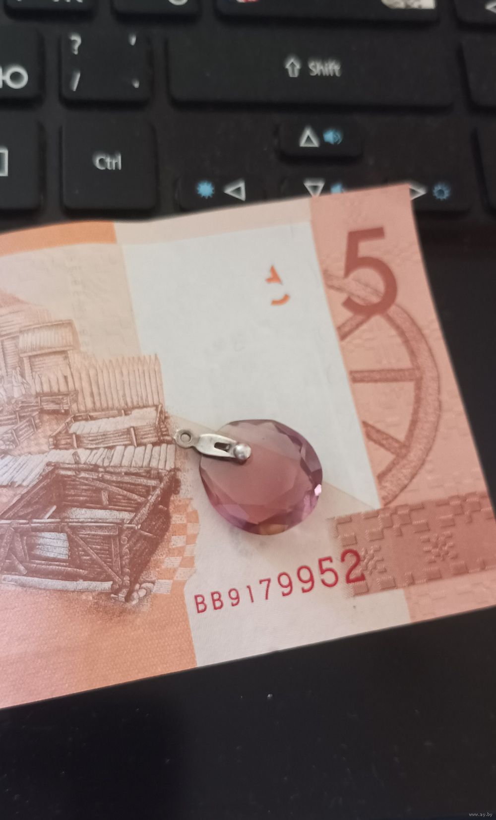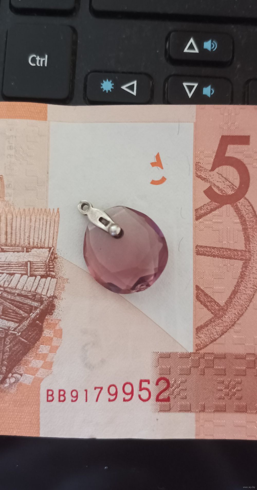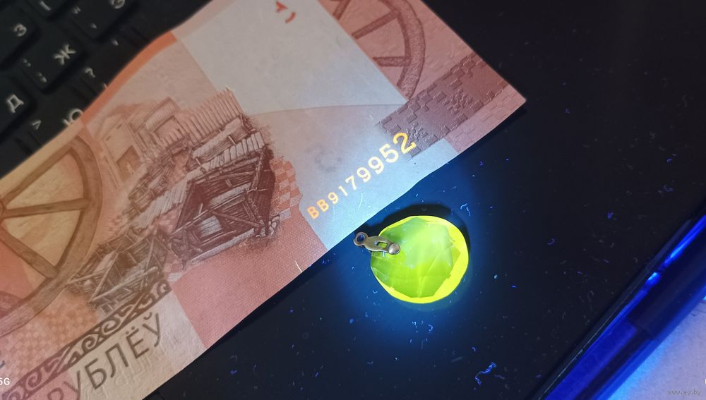 Подвеска из старых запасов СССР сиренево-розового цвета,меняет цвет от освещения в УФ лучах светиться (люминесцирует) жёлтым светом (цветом).