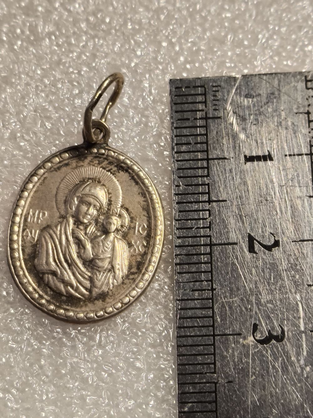 Православная нательная иконка (ладанка) с образом Божьей Матери (Казанская) с младенцем Иисусом.