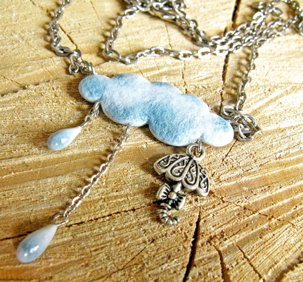 Ручная работа. Полимерная глина. Длина цепочки 52 см (можно изменить). Тучка – 1,3х3,5 см. Без обмена!!!