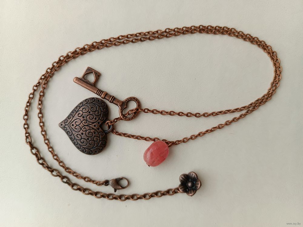 Новая. Цепочка под медь. Длина цепочки – 57 + 7 см. Сердечко (медь) – 2.8х2.5 см, длина ключика (медь) – 3.5 см. Без обмена!