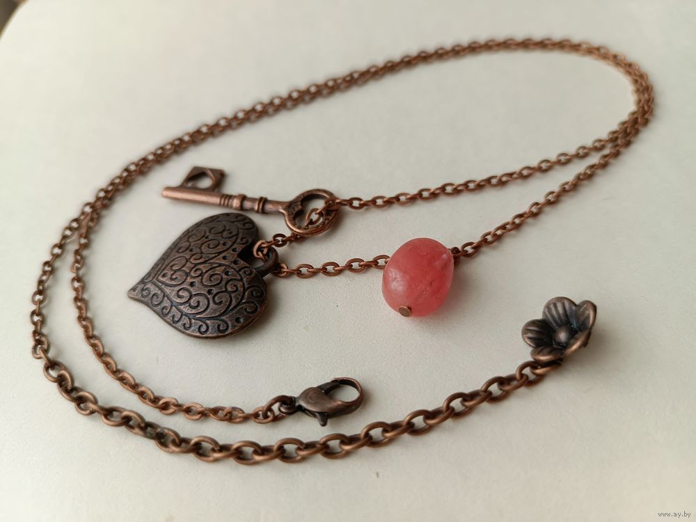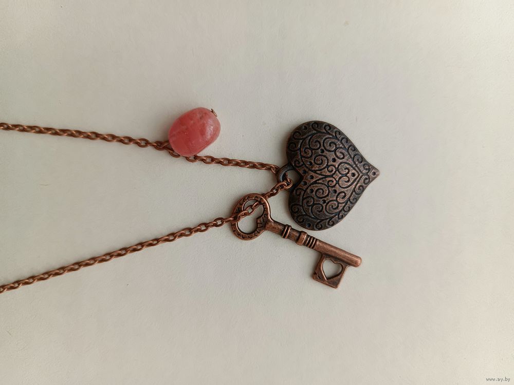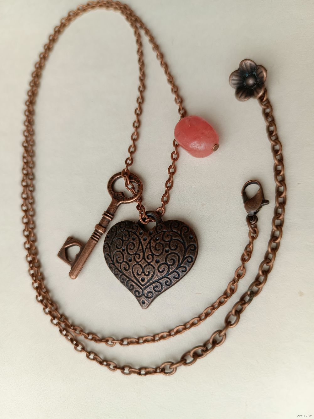 Новая. Цепочка под медь. Длина цепочки – 57 + 7 см. Сердечко (медь) – 2.8х2.5 см, длина ключика (медь) – 3.5 см. Без обмена!