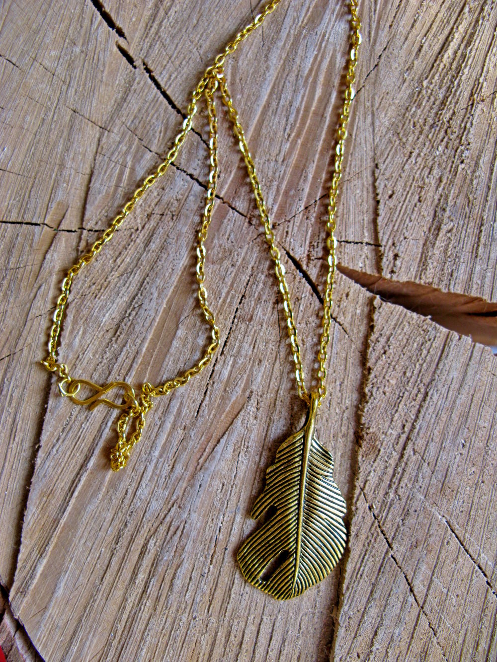 Подвеска с золотистым перышком
