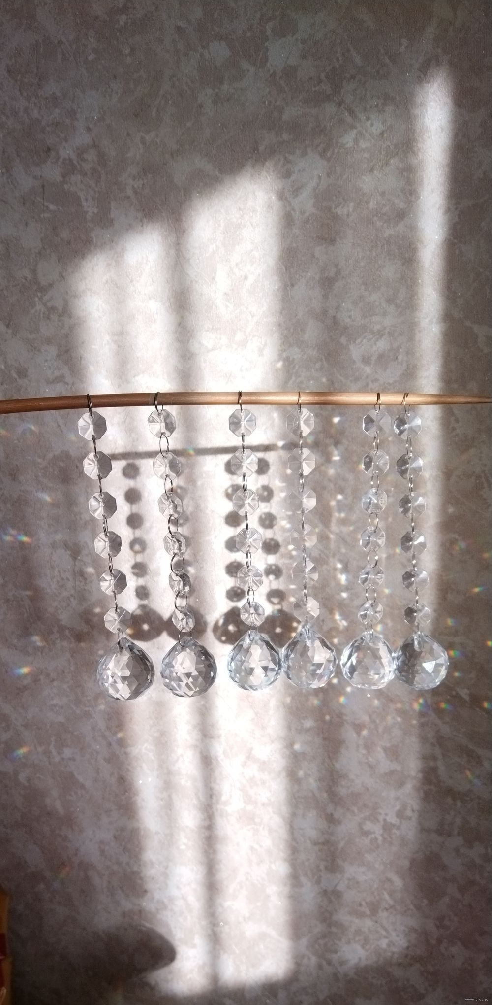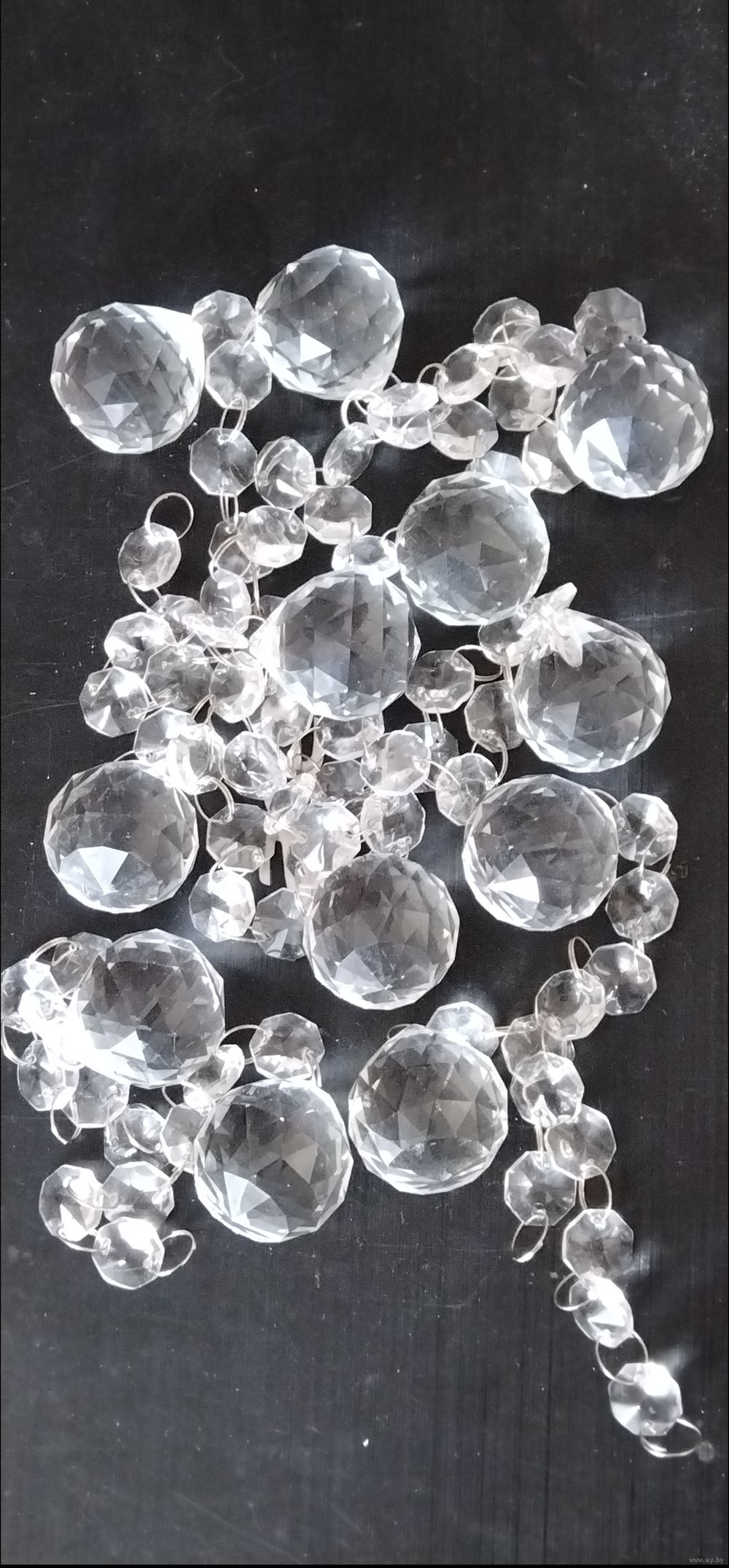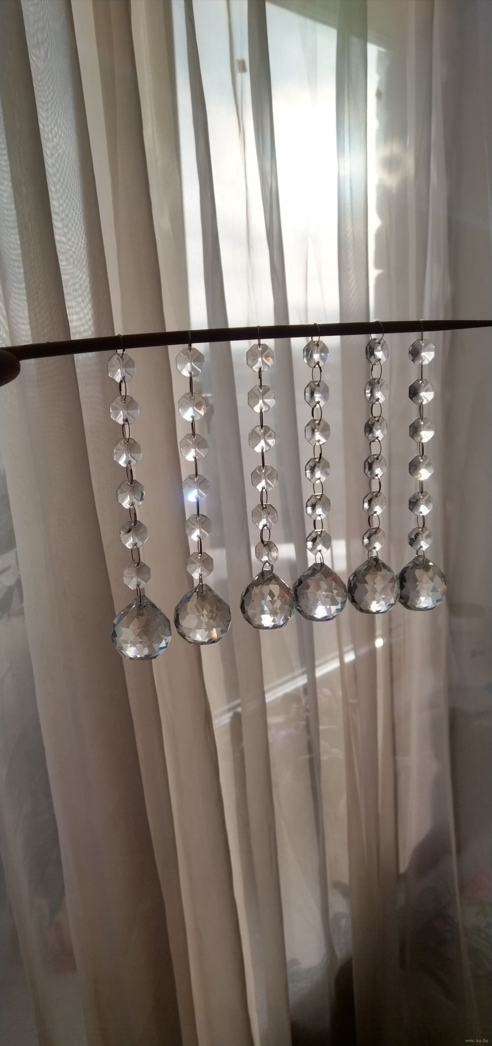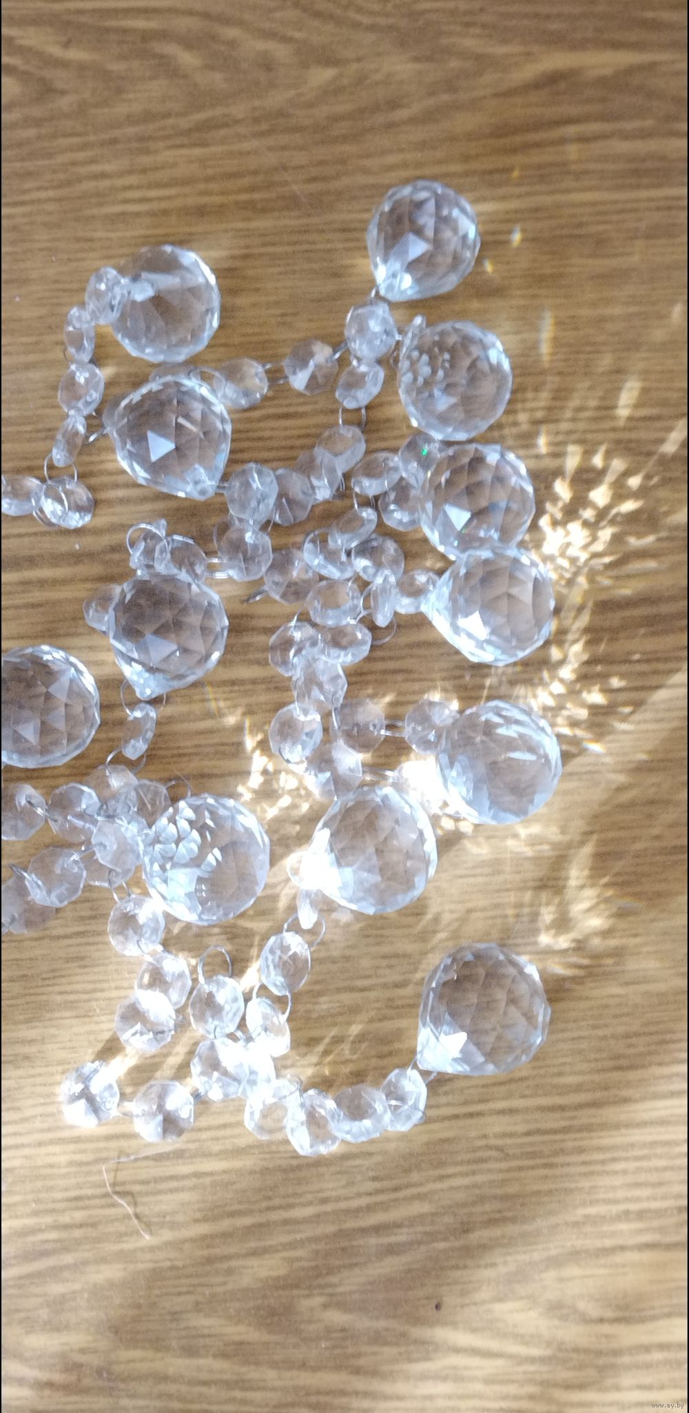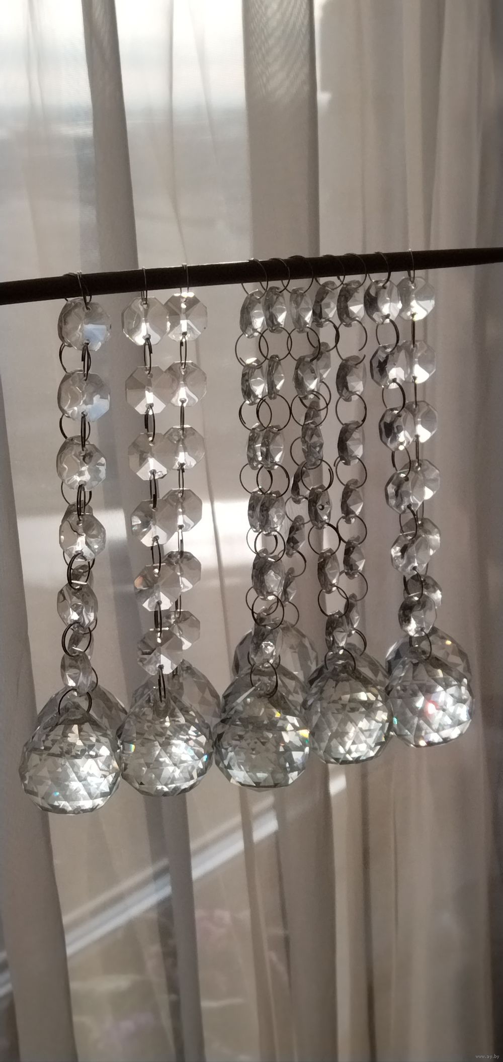 Стеклянные подвески шарики на стеклянных бусинках. Многогранные, переливаются на сонце и отражают лучи. Цепочка из бусинок сьёмная.