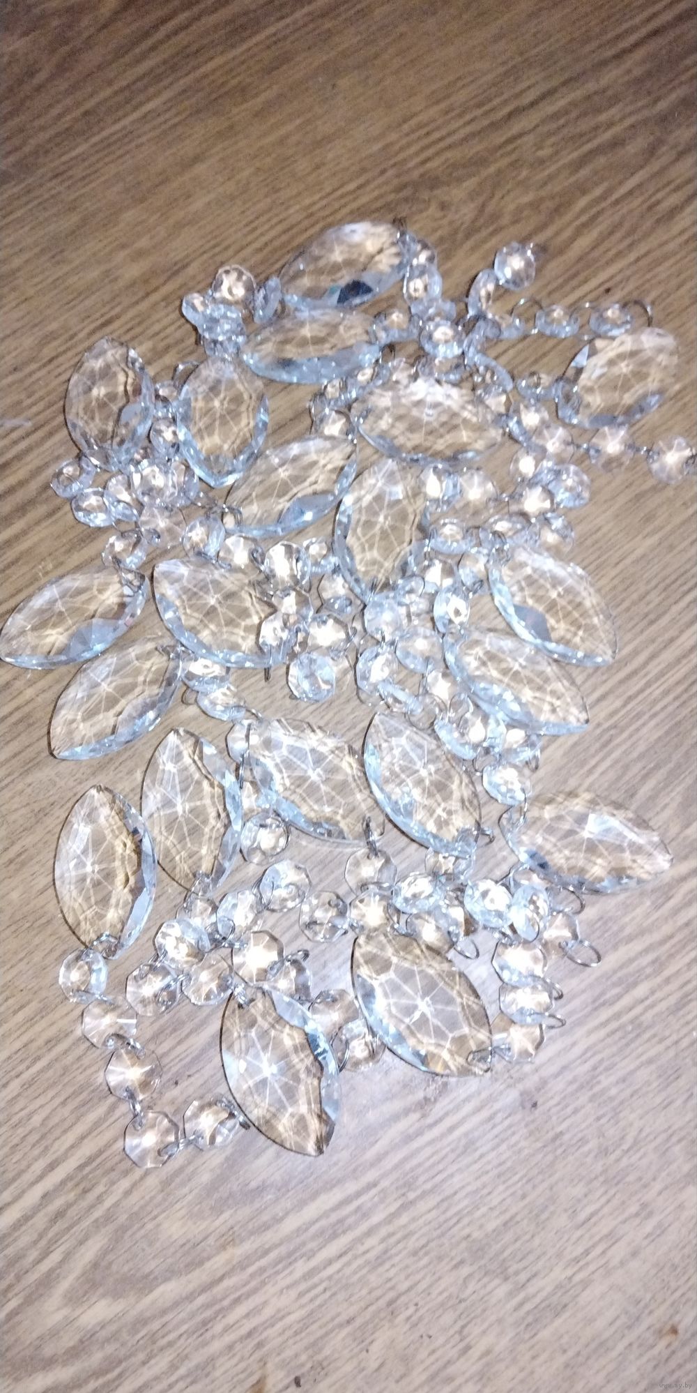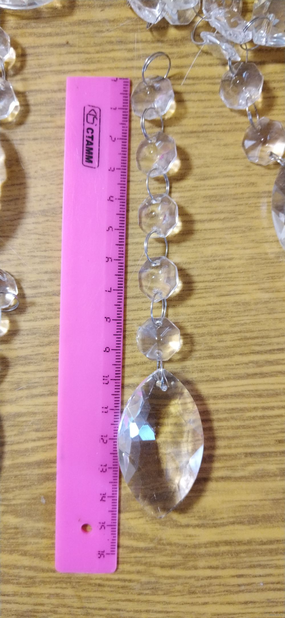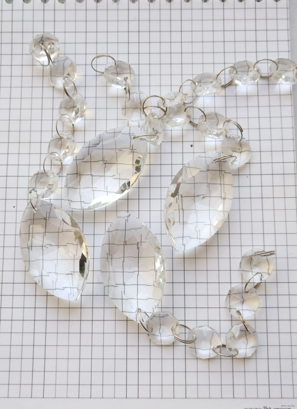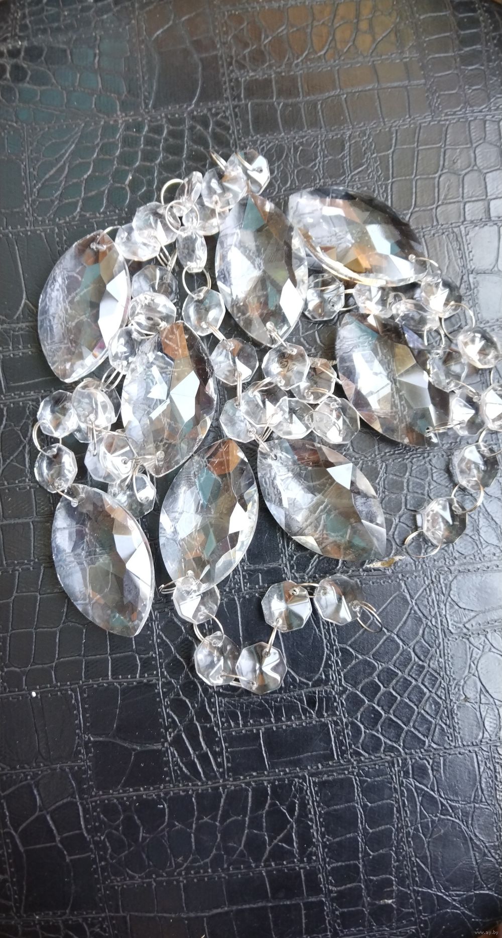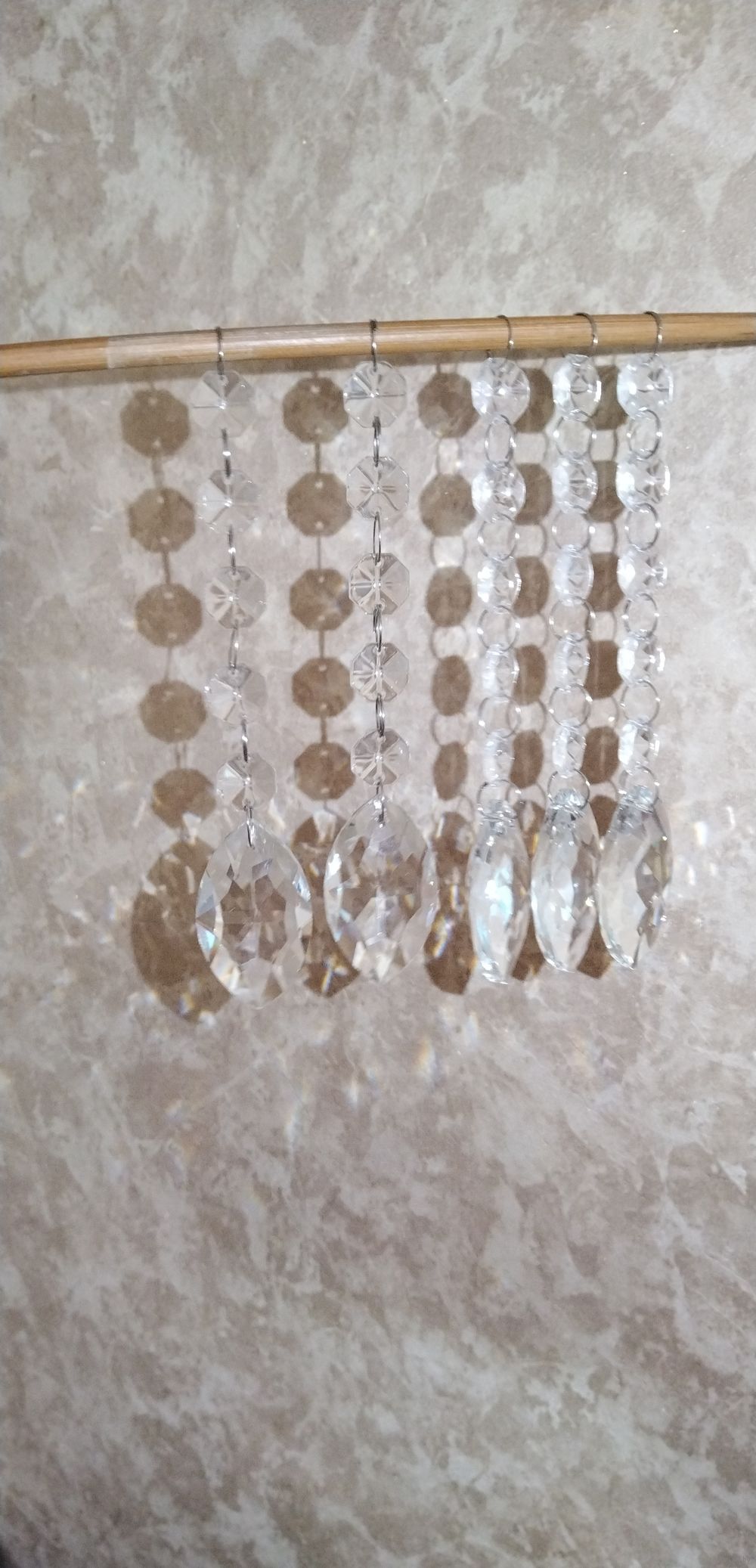 Стеклянная подвеска ромбик на стеклянных бусинках. Многогранные, переливаются на сонце и отражают лучи. Цепочка из бусинок сьёмная. Размер ромбика 4,7×2,7 см. Продаются общим количеством 21 штука.