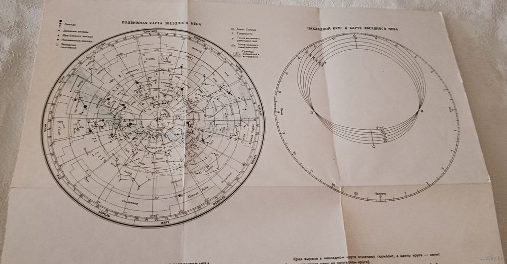 Подвижная карта звездного неба. Размер 36×34,5 см