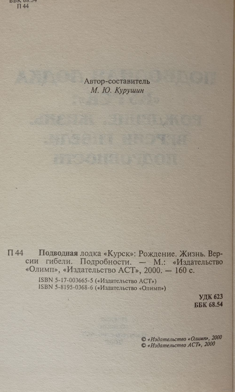 Сост. Курушин. Подводная лодка Курск: рождение. Жизнь. Версии гибели. Подробности. Изд. Олимп, АСТ 2000г. 160 страниц.