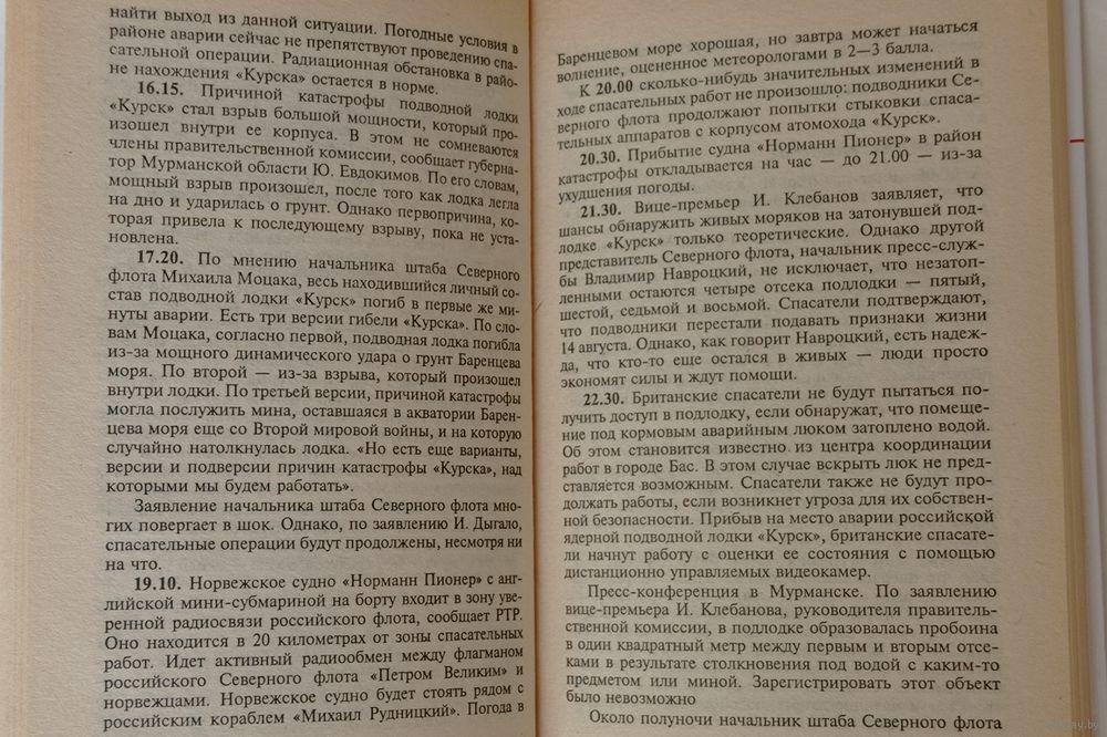 Книга издана спустя всего месяц с небольшим после гибели подводной лодки Курск.