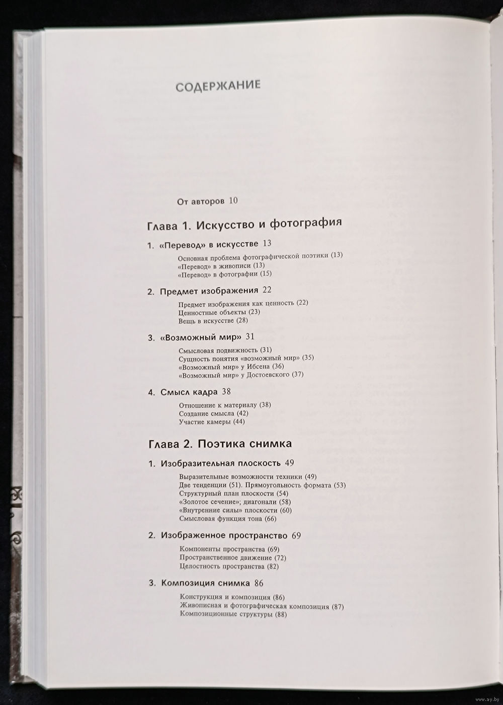 В центре исследования автора вопросы, связанные с тем, что составляет понятие поэтики фотографии, - композицией, образом, фотографическими жанрами. Фотограф строит кадр, добиваясь единства видимых линий, форм, фона, фактур. От его творческих усилий зависит выразительность, художественность снимка, поэтому важно понимать структуру кадра и знать, как она складывается. Хорошо осмысленная автором композиция создает целостность всех составных частей кадра и воспринимается зрителем как образность. В книге анализируются основные типы фотографической образности: в портрете, где внимание фотографа сосредоточено на человеке, на выявлении его индивидуальности; в пейзаже, где ведущая роль отводится пространству; в натюрморте, который повествует о вещах, и т. д. Специальный раздел книги посвящен фотомонтажу.