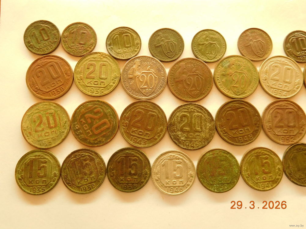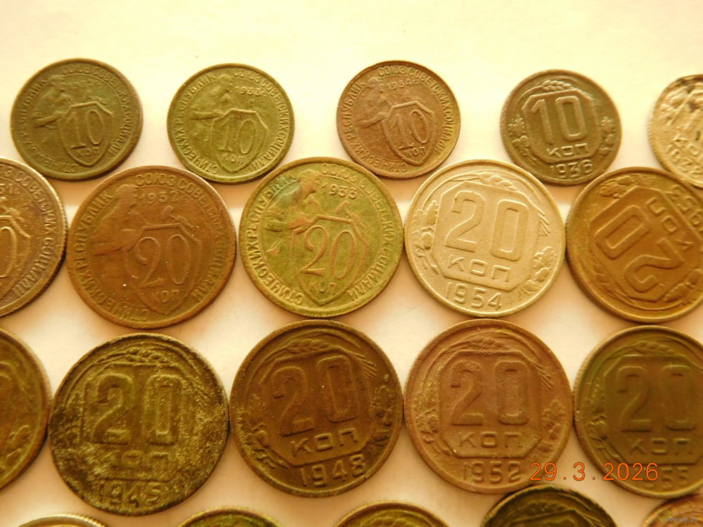20 копеек : 1931, 32, 33, 35, 36, 37, 38, 43, 45, 46, 48, 52, 53, 54, 55, 57г.