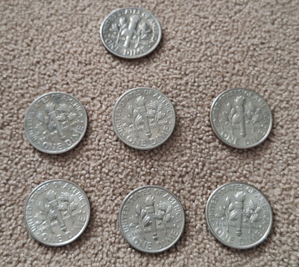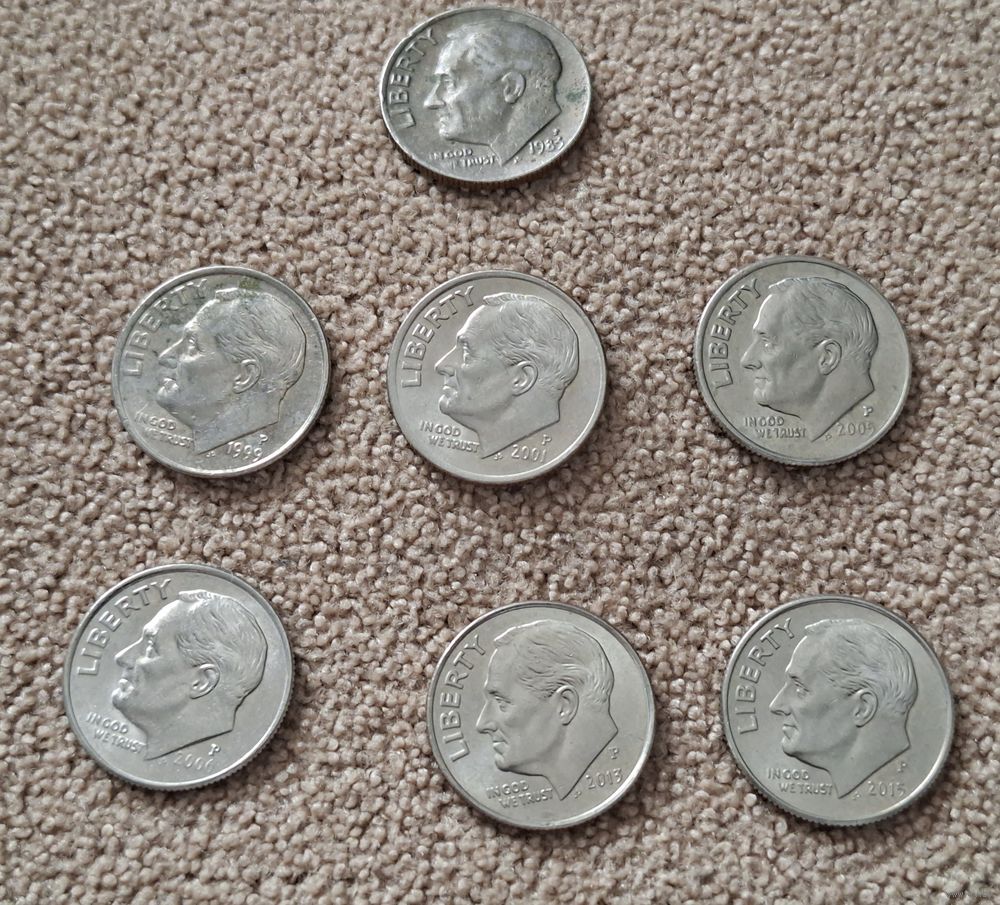 Погодовка дайм США 7 шт. 2015P, 2013P, 2006P, 2005P, 2001P, 1999P, 1983P