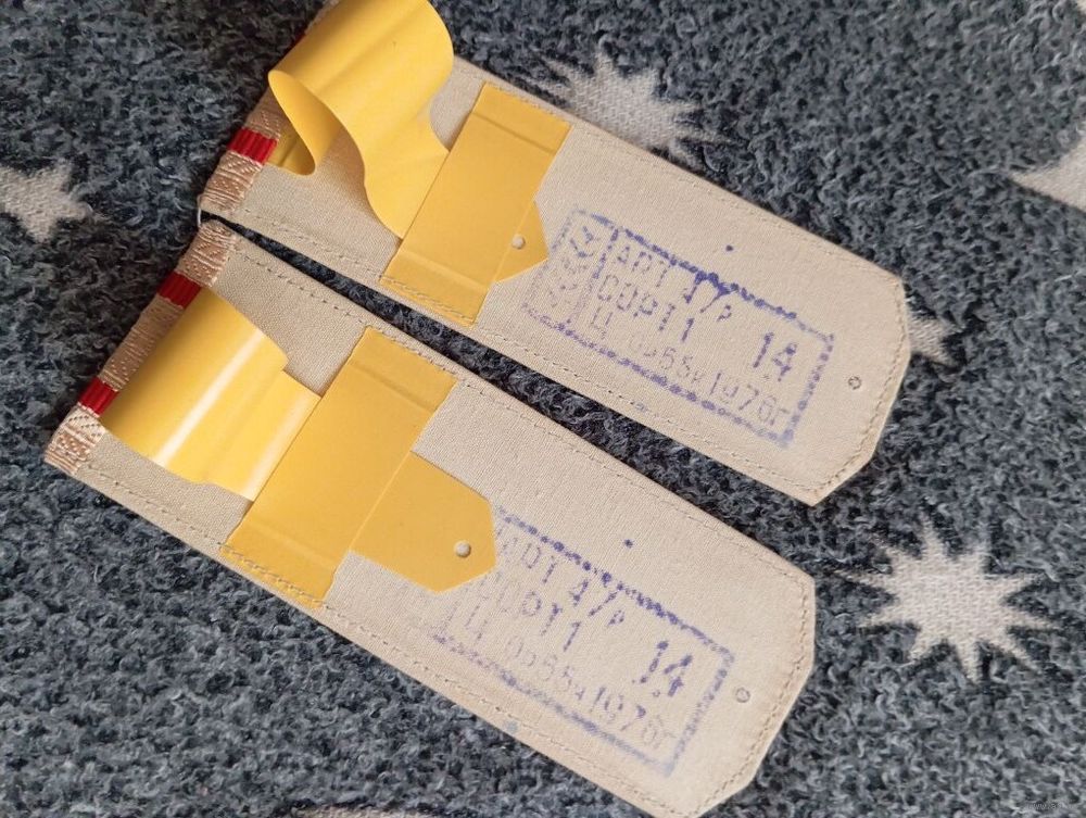 | Кремовые с двумя красными просветами не расшиты 1976 год | |