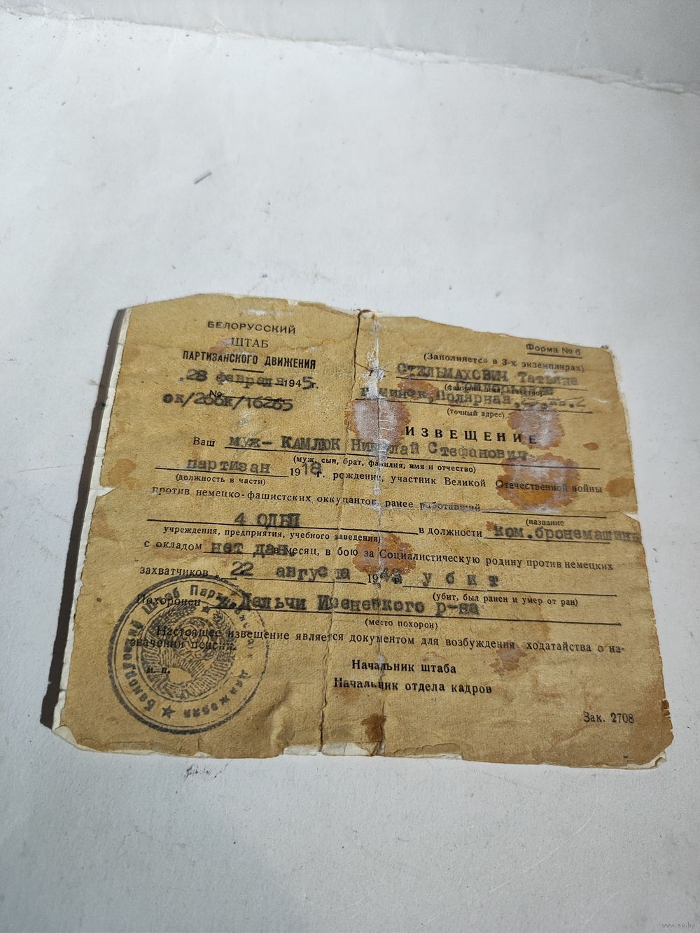 Белорусский штаб партизанского движения. Состояние на фото.(подклеена).