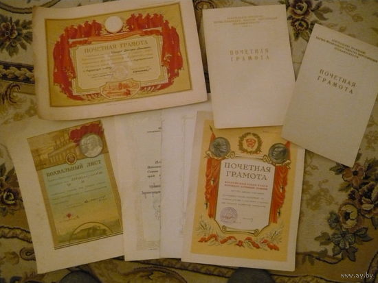 Похвальный лист Наркома Электростанций 1943г. и др.грамоты на одно имя 1943-1958г