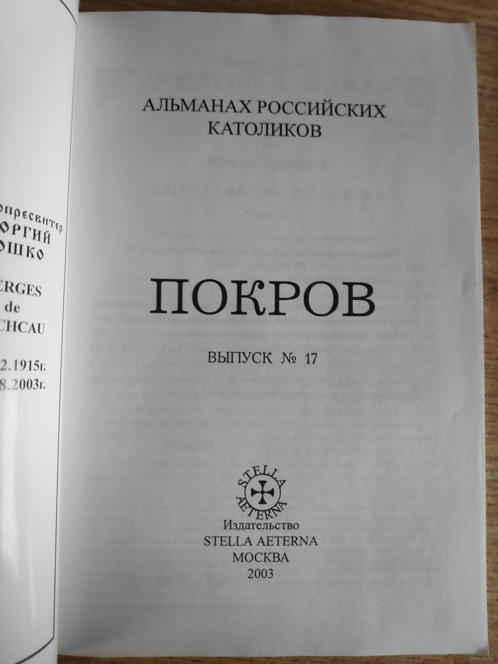 Покров. Альманах российских католиков. Выпуск № 17 П48 -М.: "Stella Aeterna" ПКПО, 2003. - 160 с.