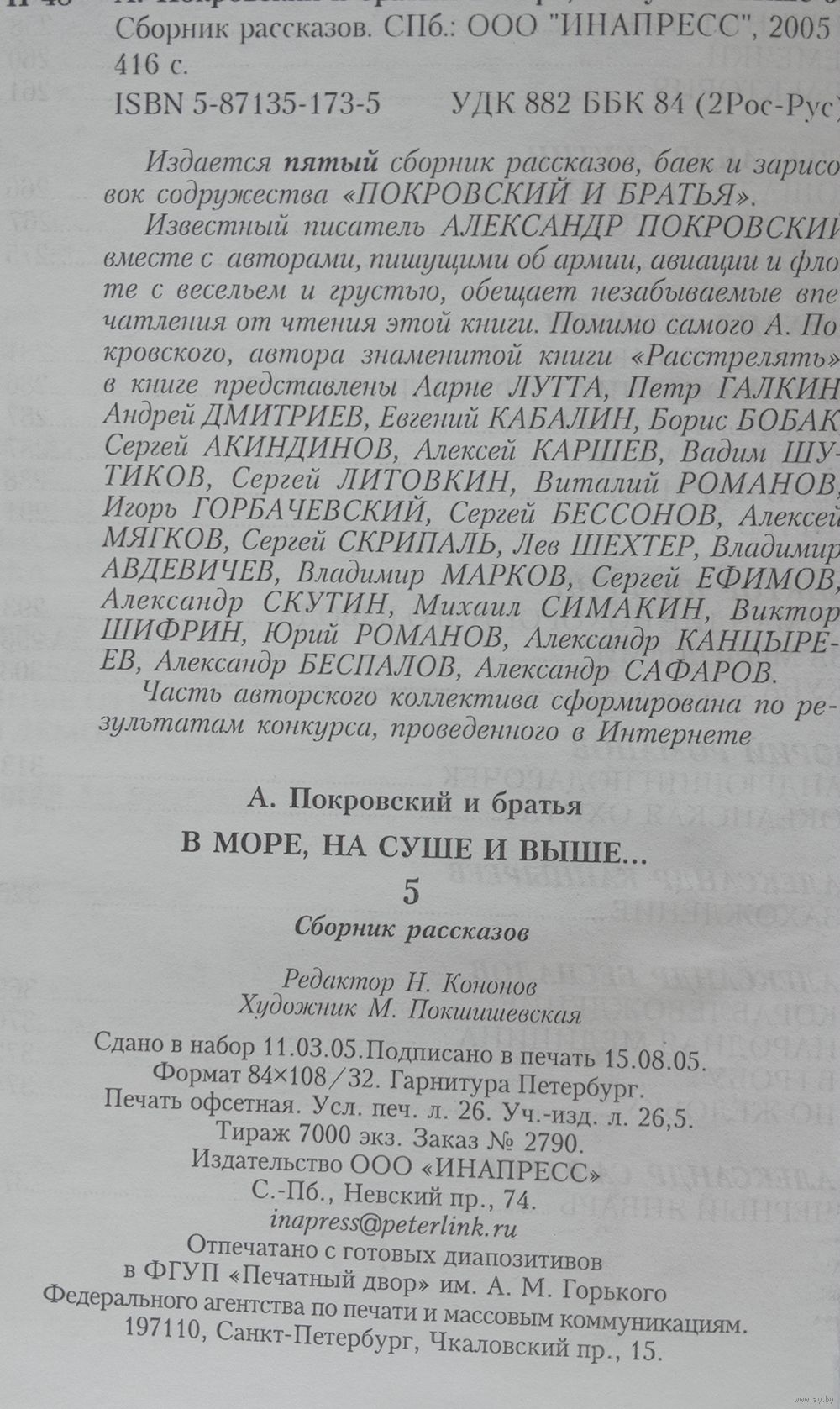 Покровский и братья. В море, на суше и выше. Сборник рассказов. Выпуск 5. СПб. ИНАПРЕСС 2006г. 576 страниц.