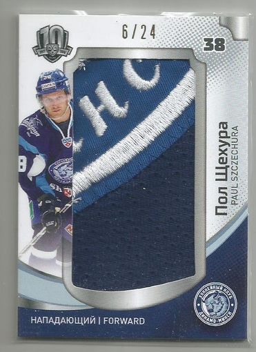 Пол Щехура / "Динамо" Минск / Кусочек логотипа клуба. Тираж 6/24 экз./ Коллекция ""SeReal KHL Exclusive Collection 2008-2018".