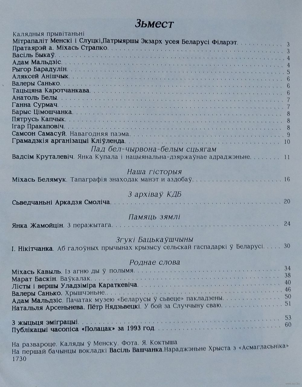 Полацак: N 10 / 1993 г. Выданне Беларускага культурна-асветніцкага центра. Кліўленд"