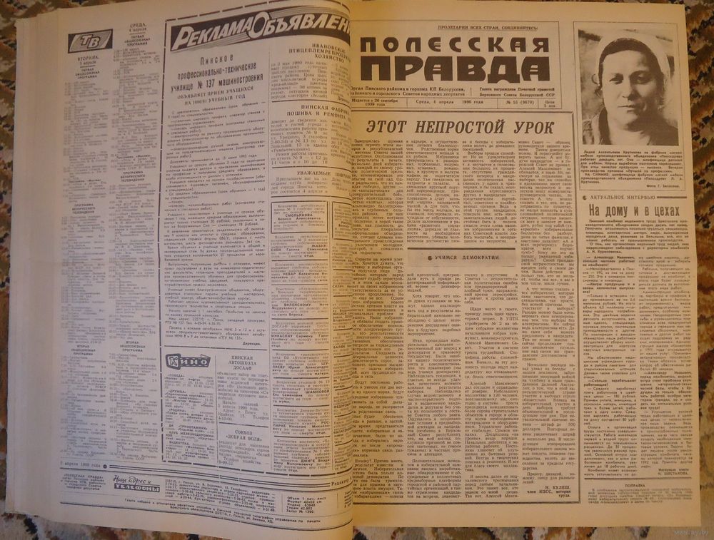 Подшивка годовая полная, содержит 208 номеров. Переплетена, обложки твёрдые. Всё в хорошем состоянии. Имеются также подшивки Полесской правды за 1950-2000 годы.
