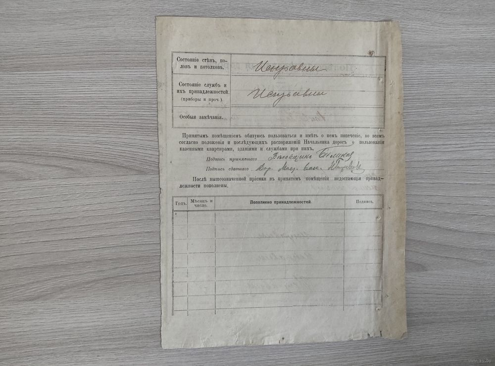 Полесские ж.д.Акт приема квартир до 1917 года.