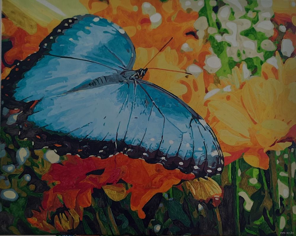 Картина "Полет бабочки" окрашена по номерам акриловыми красками.