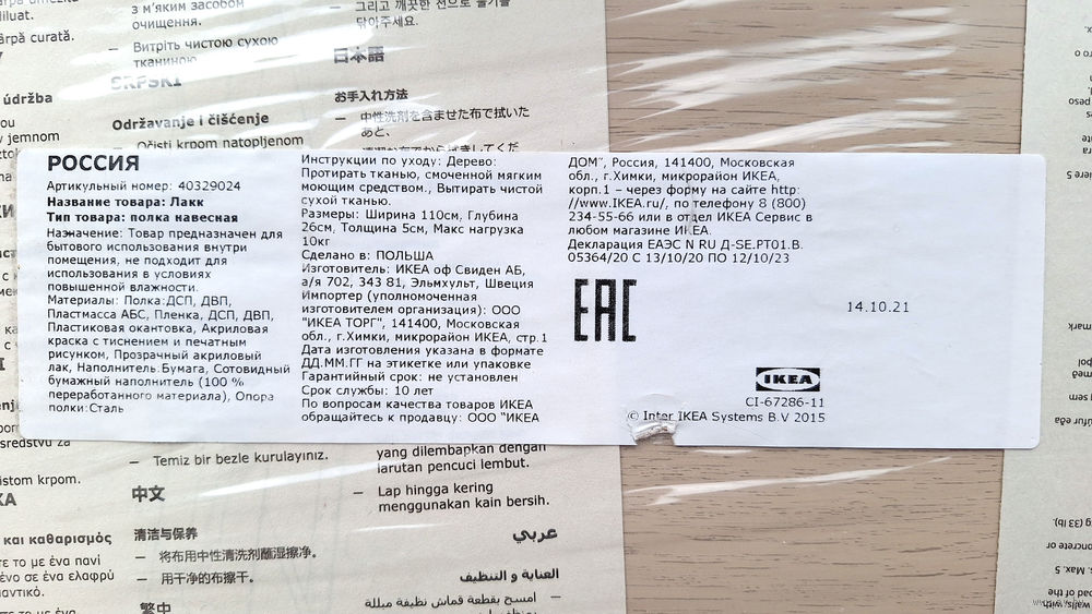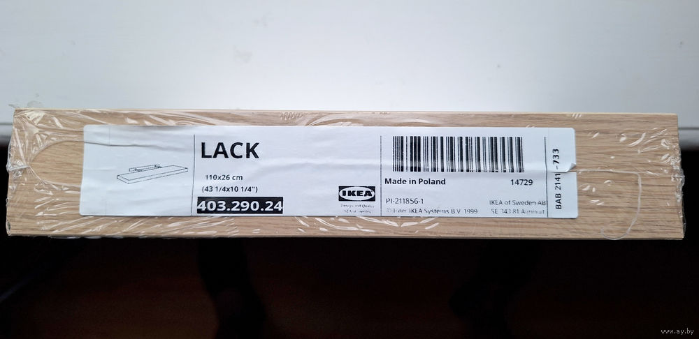 Полка навесная IKEA 110×26×5, беленый дуб (Польша)