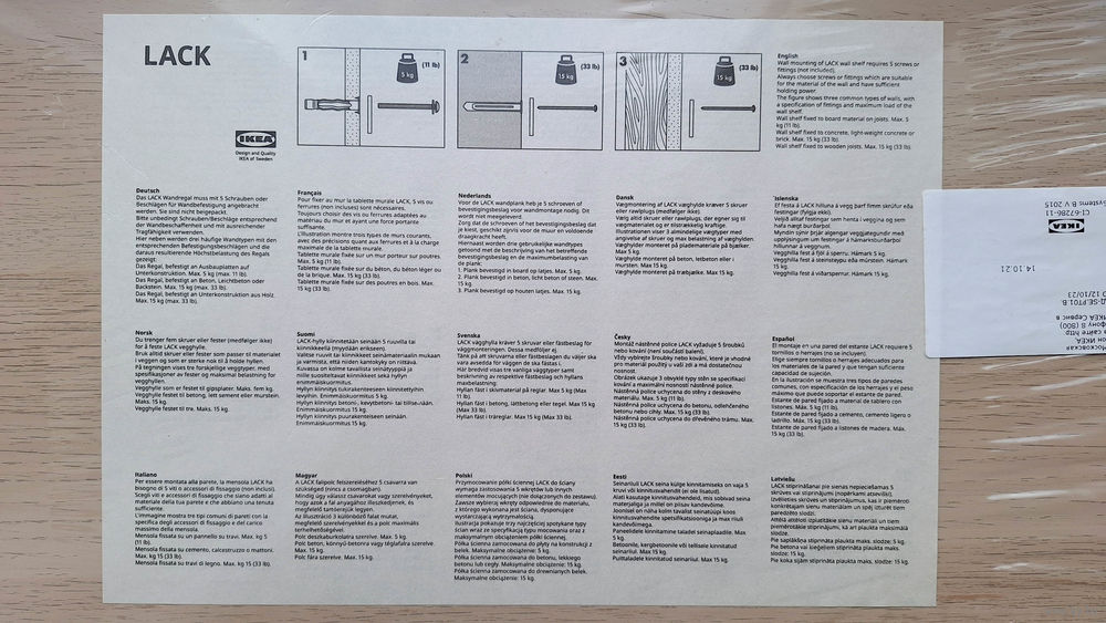 Шурупы для фиксации к стене не прилагаются.