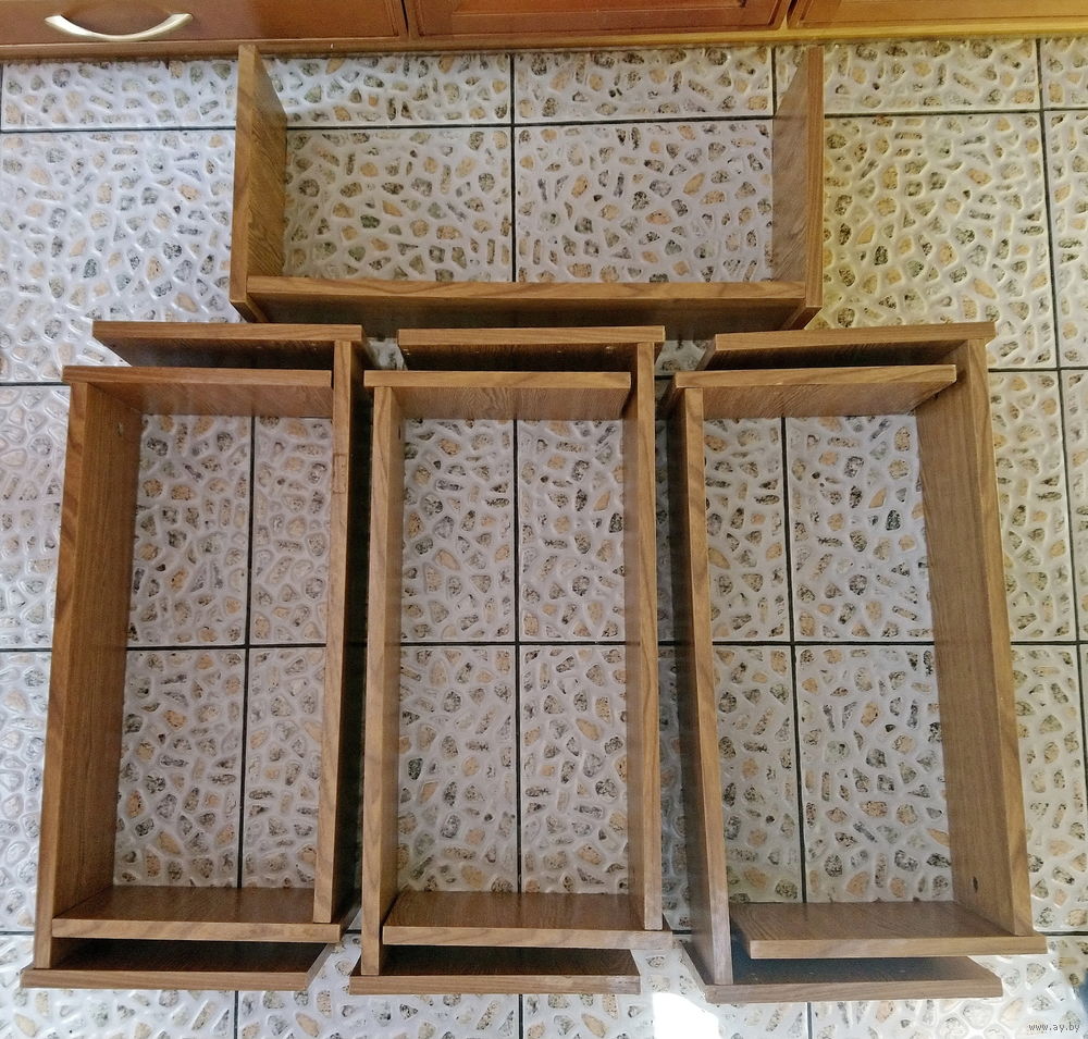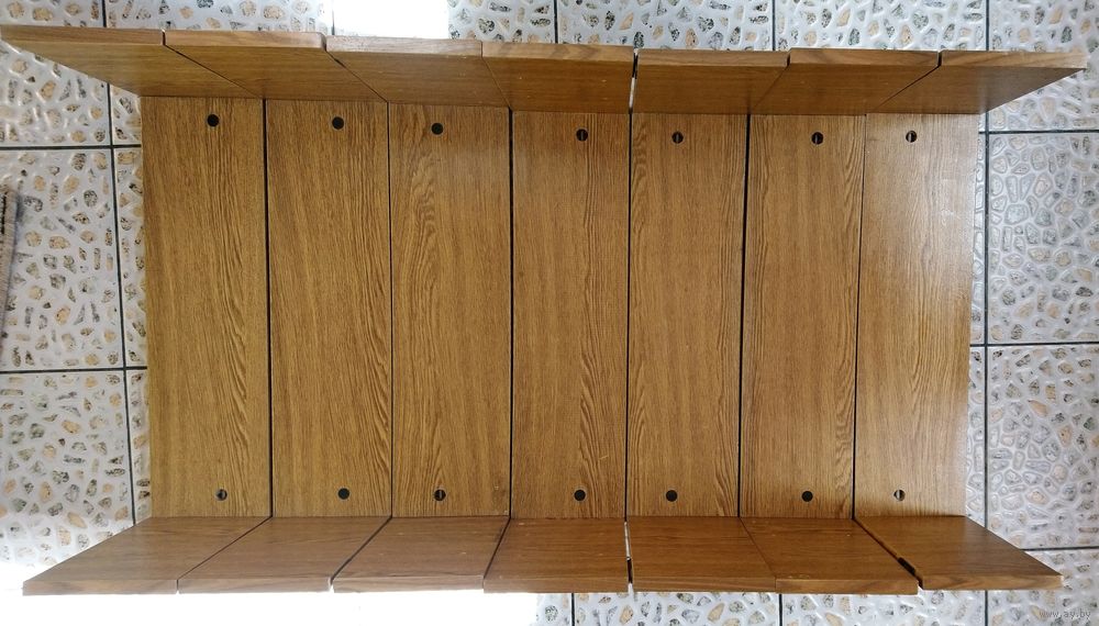 7 полок. Цена за все. Высота - 27 см., ширина - 60 см., глубина - 16 см. Вес одной полки около 2,3 кг. В 3-х полках имеются дополнительные отверстия. Видно на последней фотографии