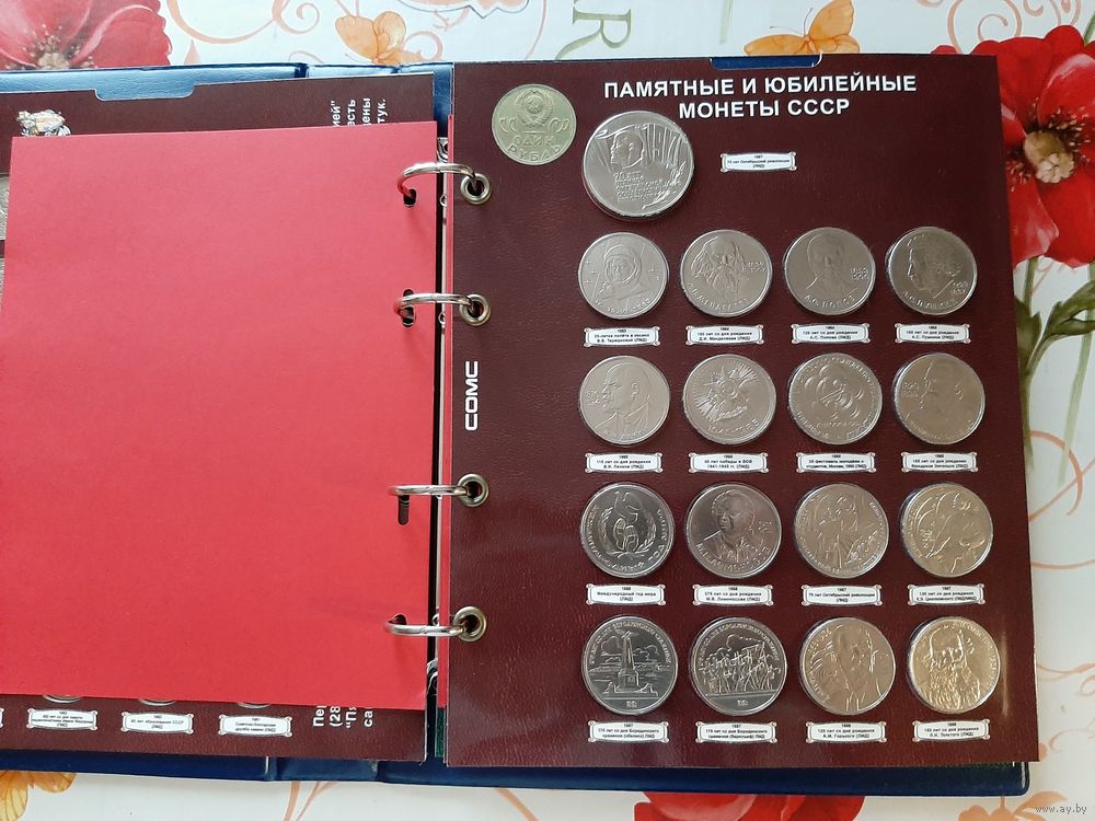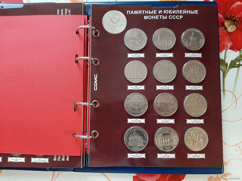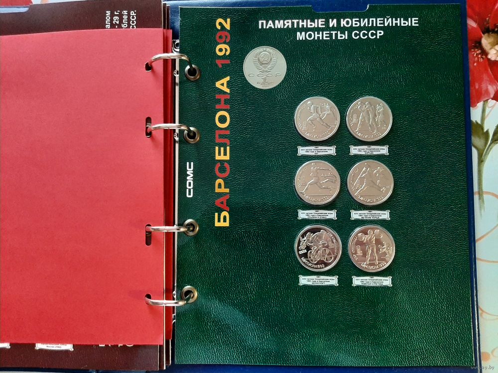 В комплект входят 68 юбилейных монет в специальных блистерных листах, 6 монет-копий (Барселона 92), папка формата Оптима (кожзам).