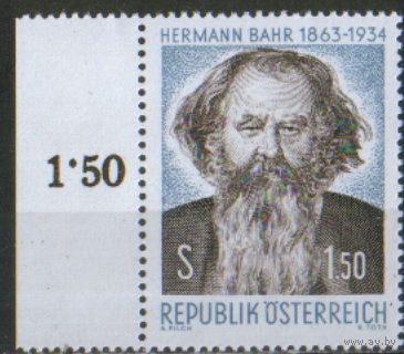 Полная серия из 1 марки 1963г. Австрия "100 лет со дня рождения писателя и режиссёра Германа Бара" MNH