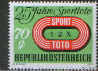 Полная серия из 1 марки 1974г. Австрия "25 лет лотерее Спорт-Тото" MNH